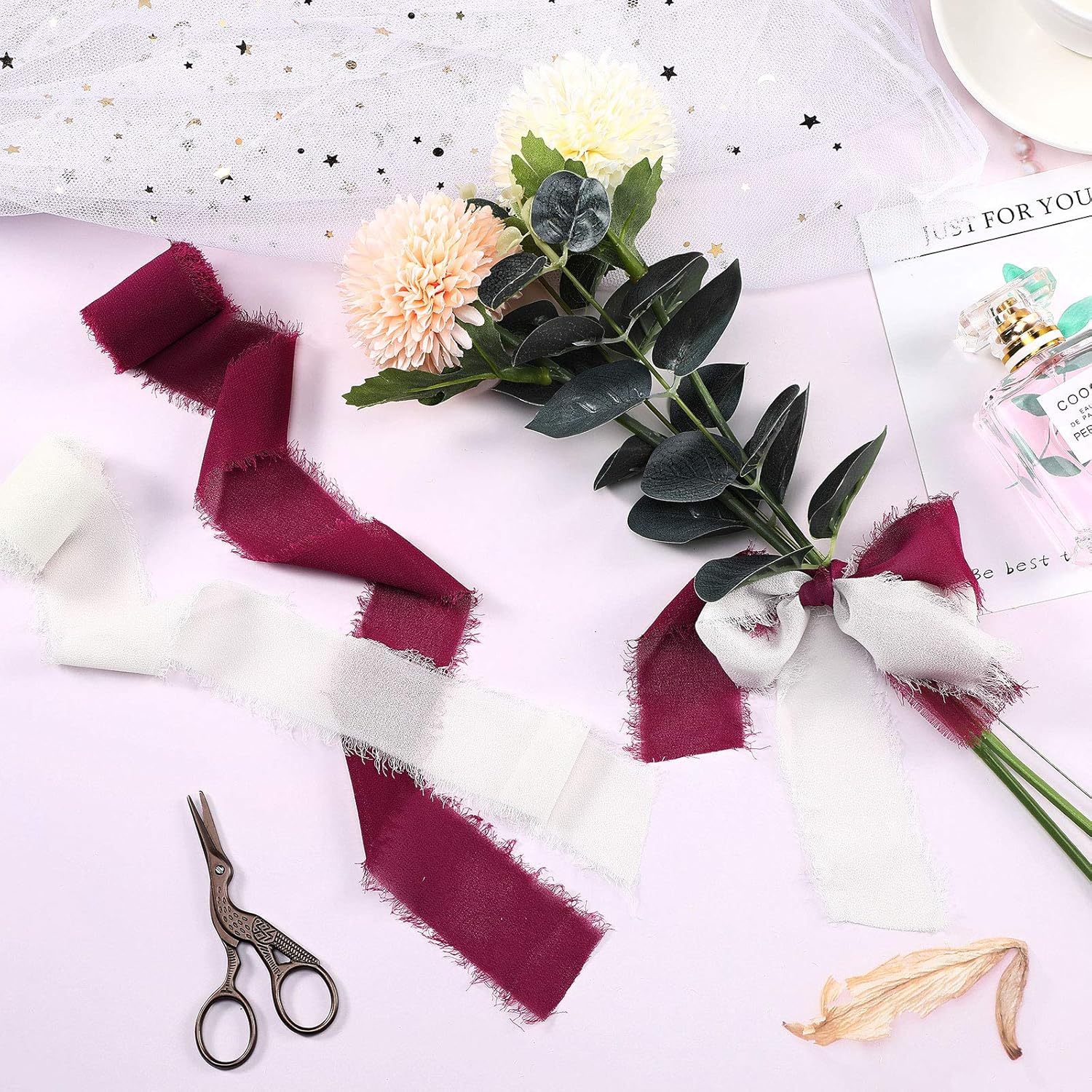 - Multiple applications: you can apply these fringe chiffon ribbons into different projects, such as bouquet decoration, invitations, backdrop decorations, stationary, newborn and details photography styling, gift wrapping and more