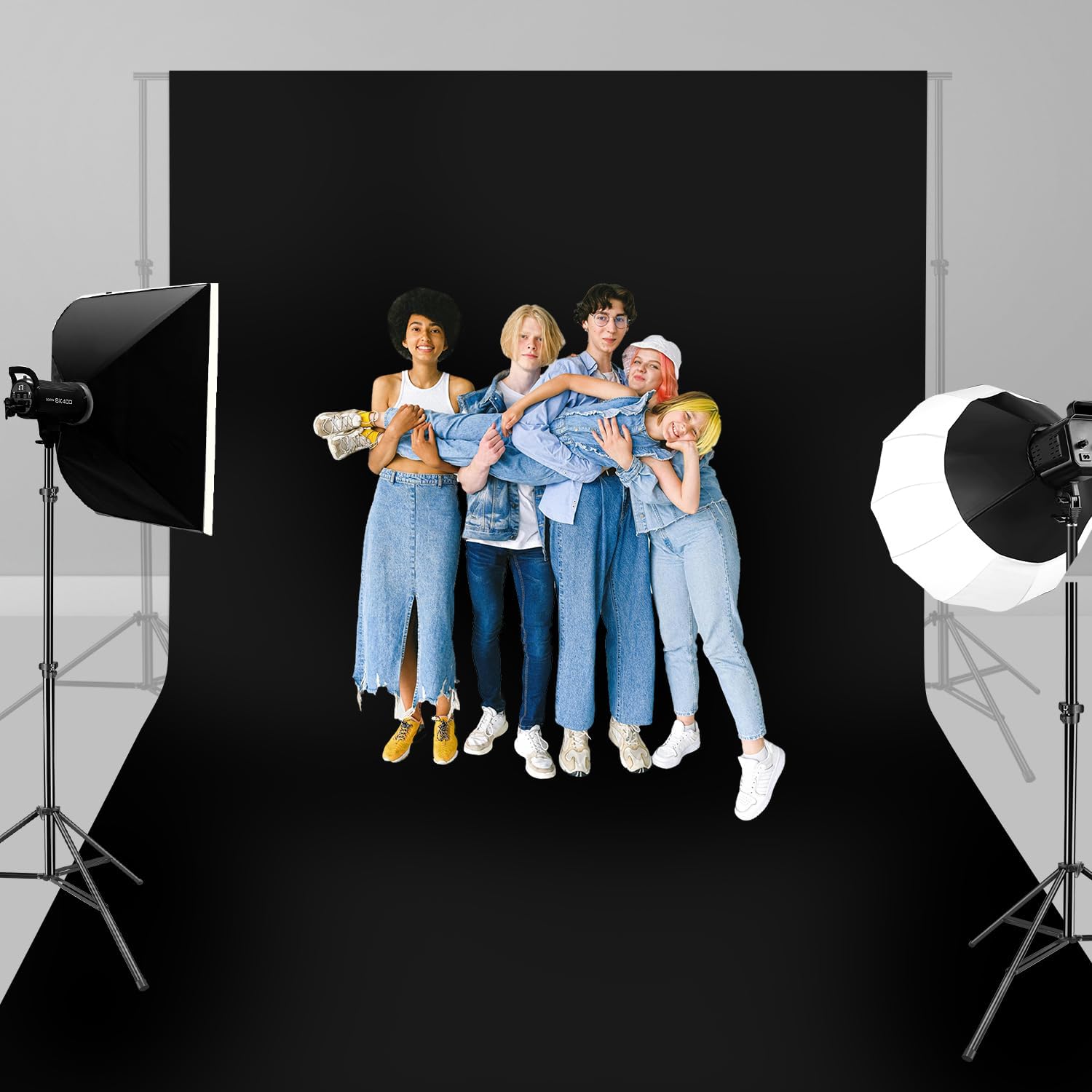 - Application: The large black backdrop background is suitable for shooting large scenes such as many people taking photos together, complex scenes in professional studios that require a large number of photographic props, virtual background and etc.
