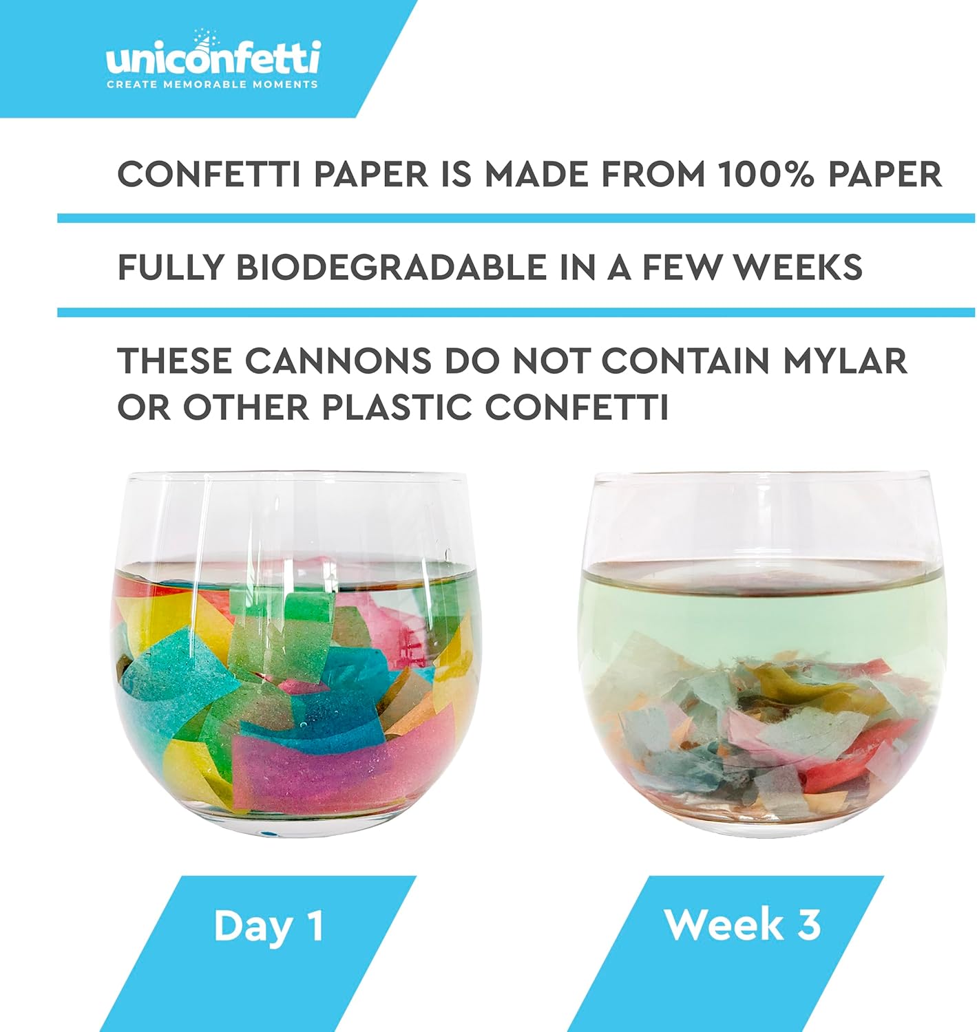 - π 100% BIODEGRADABLE & SAFE - Confetti are made of lightweight fire resistant papers, 100% biodegradable. Color dye is non-toxic and won't rub onto your clothing. 100% safe for your party and good for the environment.