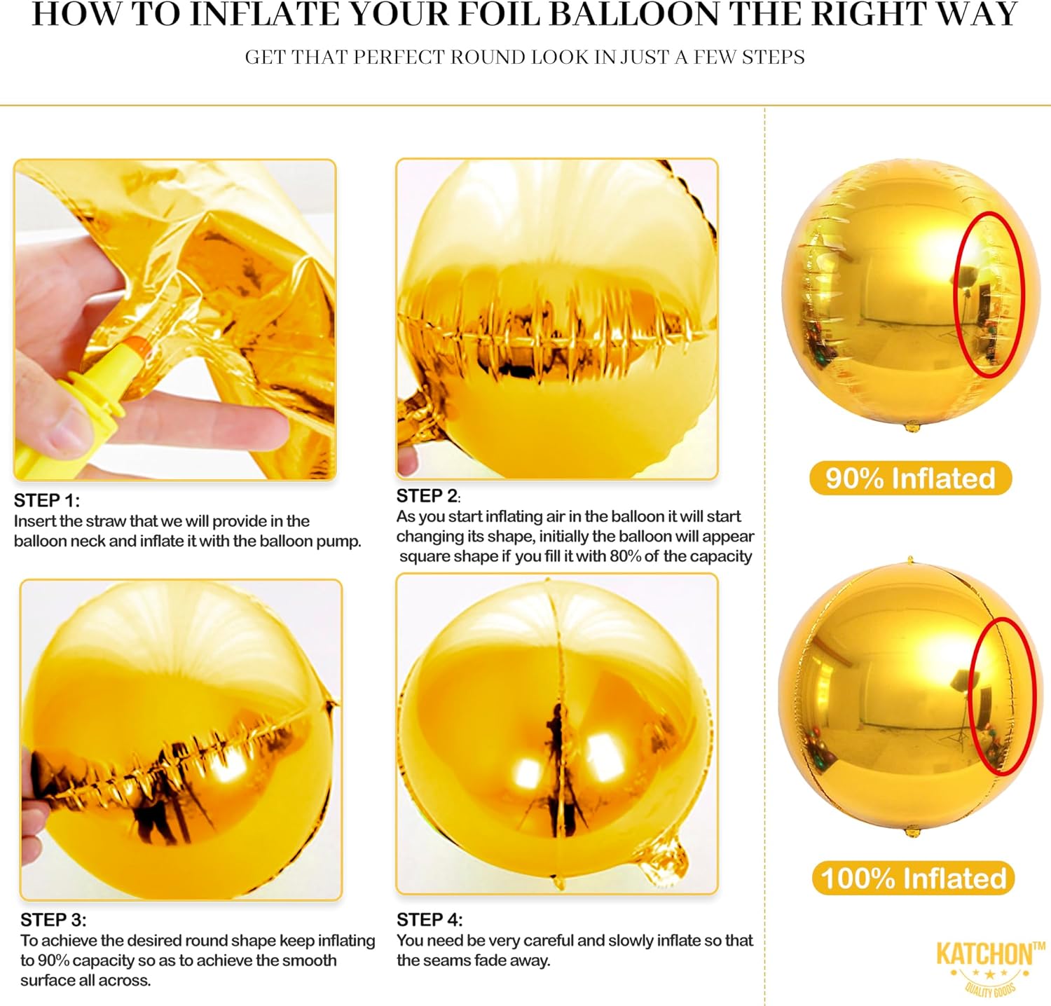 - REUSABLE | STURDY | DURABLE - These big gold balloons are made from the grade "A" quality foil material making it re-usable, durable and sturdy. You can use these 4D gold balloons for oscar themed decorations, hollywood party decorations, globos dorados metalicos for golden decorations. Combine red and gold mylar balloons to make an arch that is ideal for gold party decorations, gold sphere balloons for black and gold happy birthday decorations, halloween decorations, halloween decor for home, fall decor for home, balloons for thanksgiving, or large gold and black balloons.