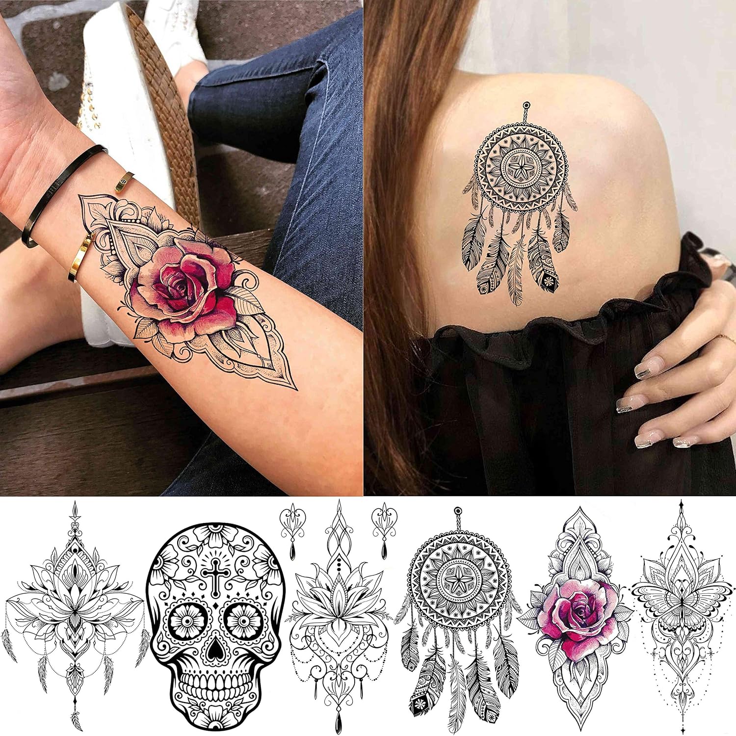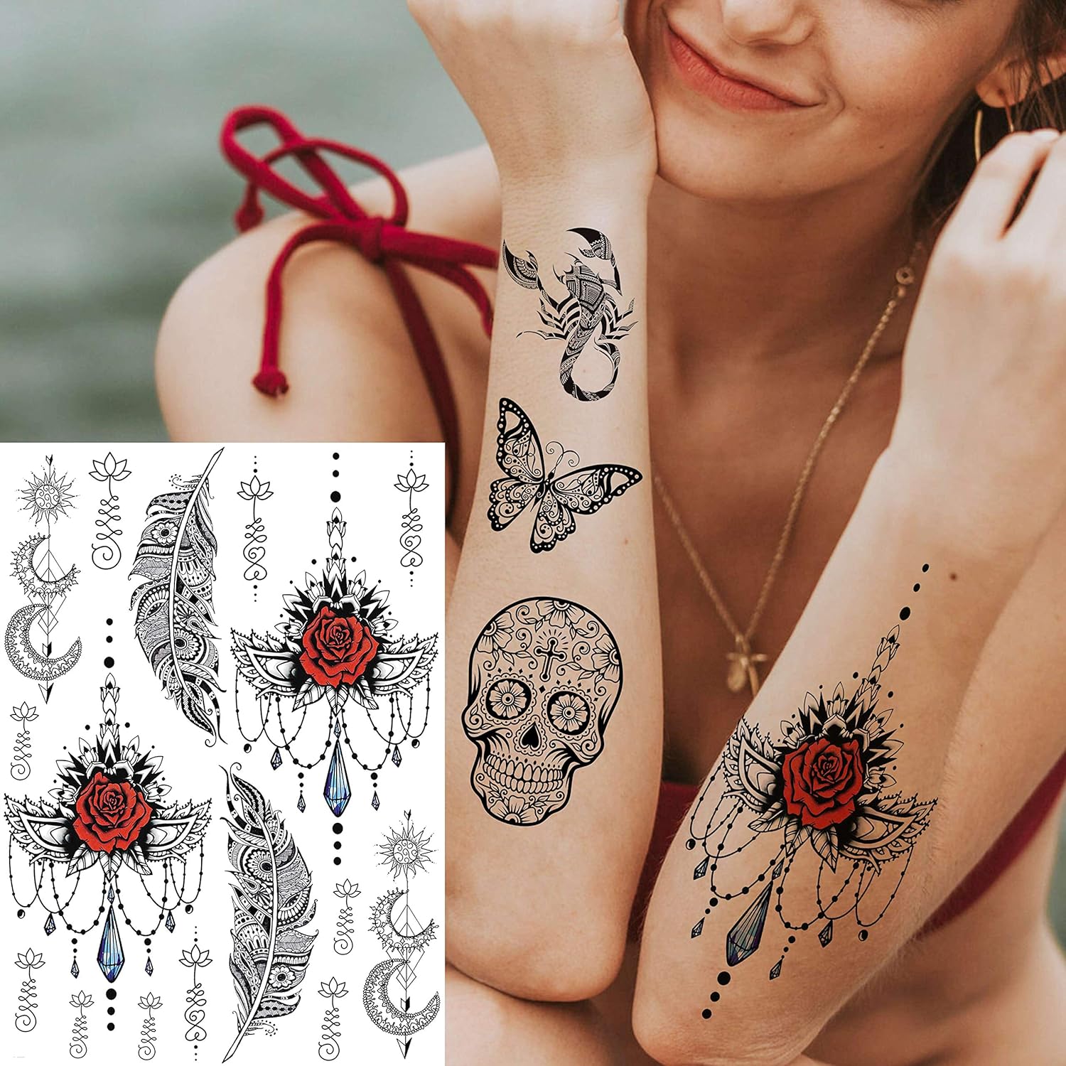 - 🍷Easy Application And Long Lasting🍸 Water Transfer Black Tattoos Temporary Paste Is Easy To Use. To Apply Variety Sleeve Tattoos For Women On Skin By Wet It With Water And Wait For 20-30 Second. Waterproof Tatoos Painting Are Disposable Durable And Long Lasting Tattoo On Body For 4-7 Days But Washable Very Easy To Remove By Rub It With Makeup Remover Oil Or Alcohol.