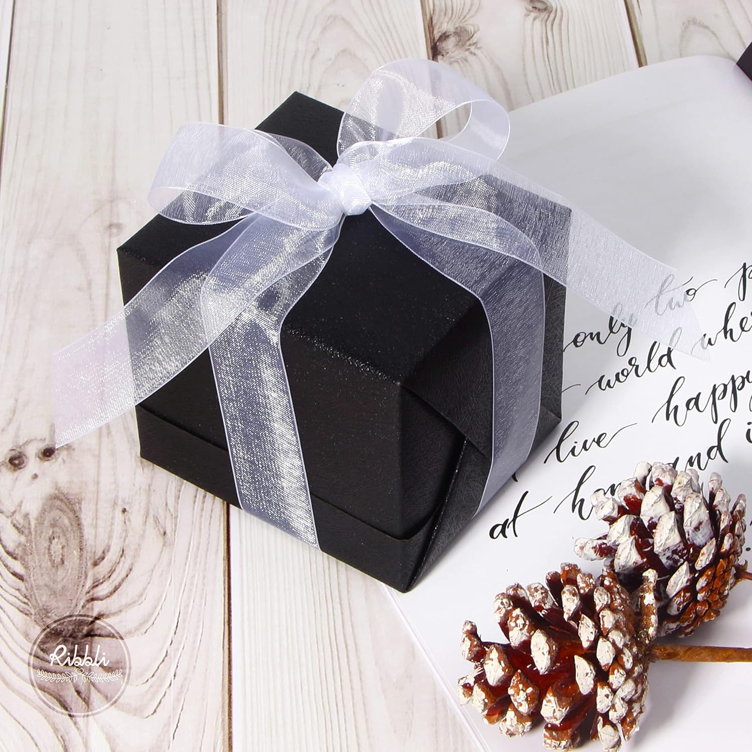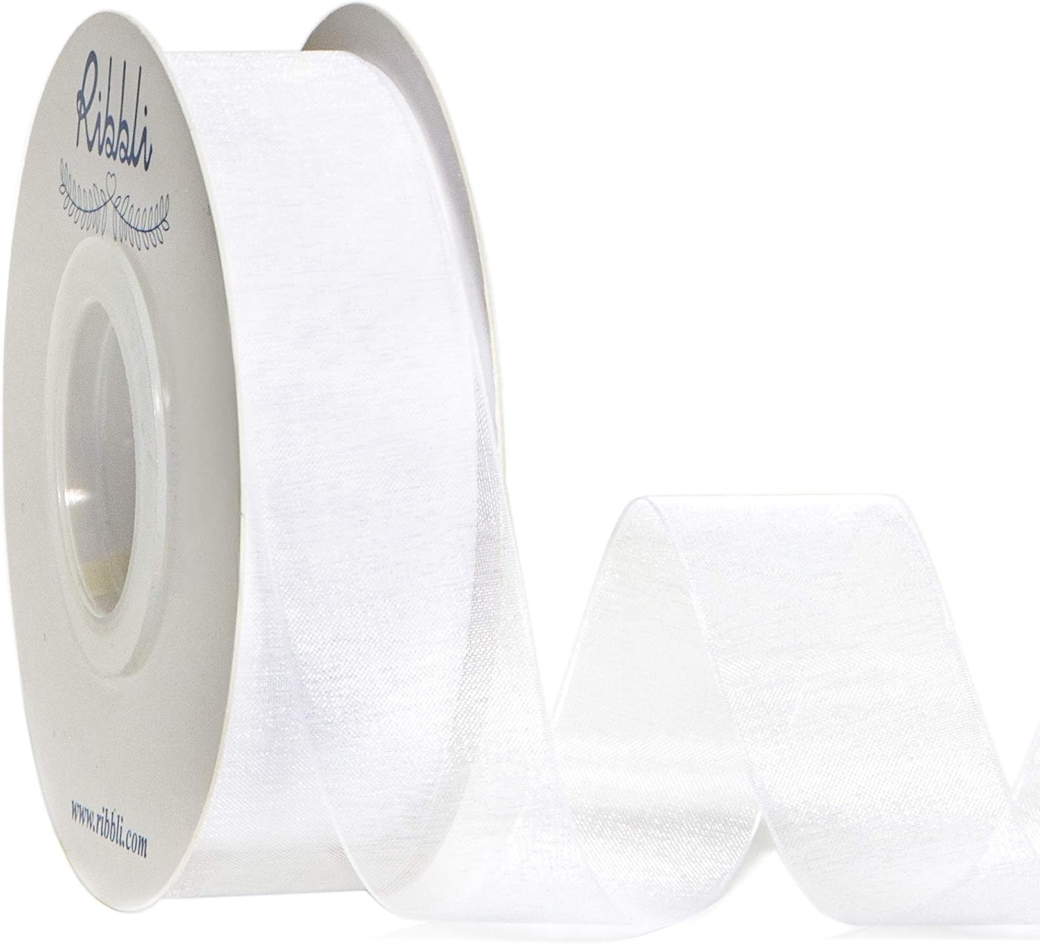 Ribbli White Sheer Organza Ribbon,1 Inches x Continuous 50 Yard Use for Gift Wrapping,Bouquet Wrapping,Wedding Decoration,All Crafting and Sewing