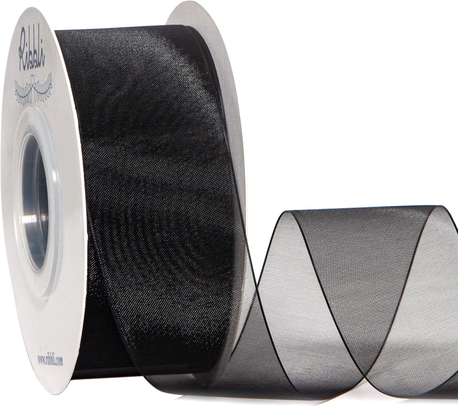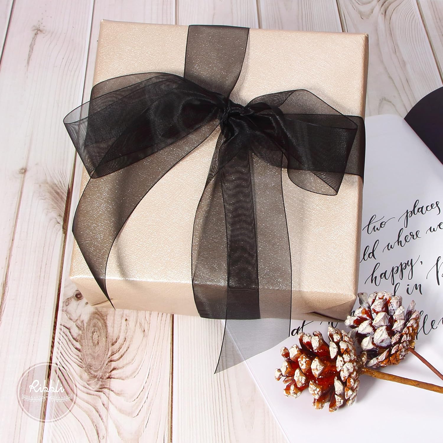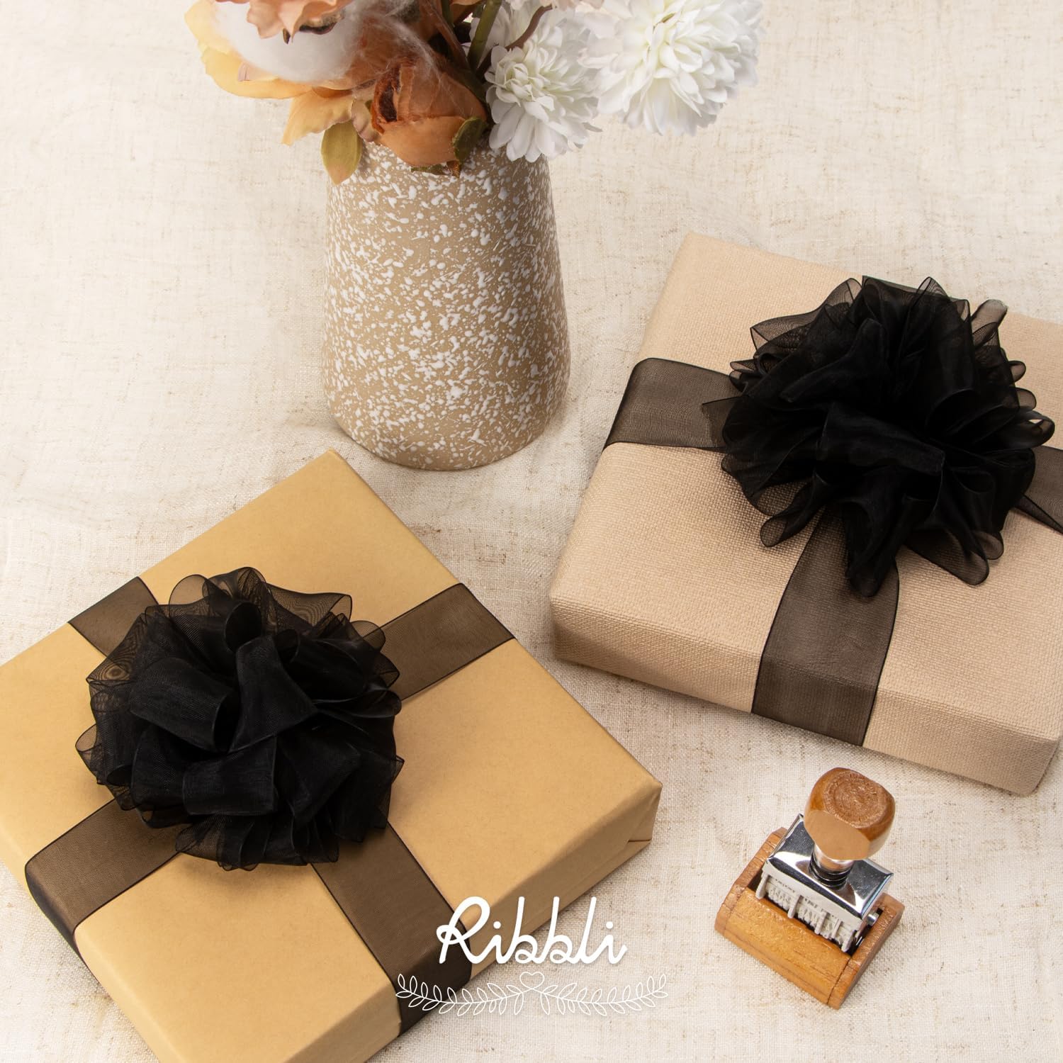 Ribbli Black Sheer Organza Ribbon,1-1/2 Inches x Continuous 50 Yard Use for Gift Wrapping,Bouquet Wrapping,Wedding Decoration,All Crafting and Sewing