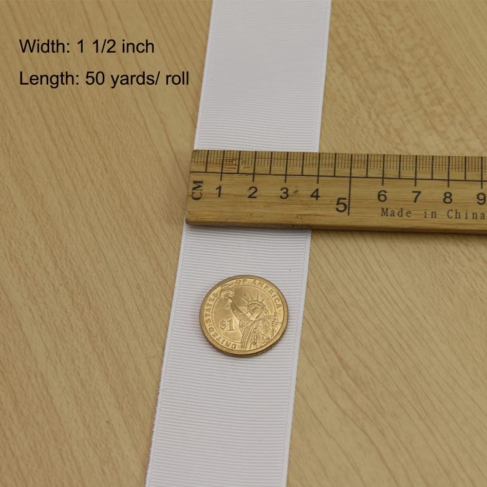 One Roll 50 Yards White Soild Grosgrain Ribbon 1 1/2 inch Boutique Gift Wrapping Package Ribbon-DIY Crafts Bow Hair Headband Accessories Assortment Ribbon #29(38mm)