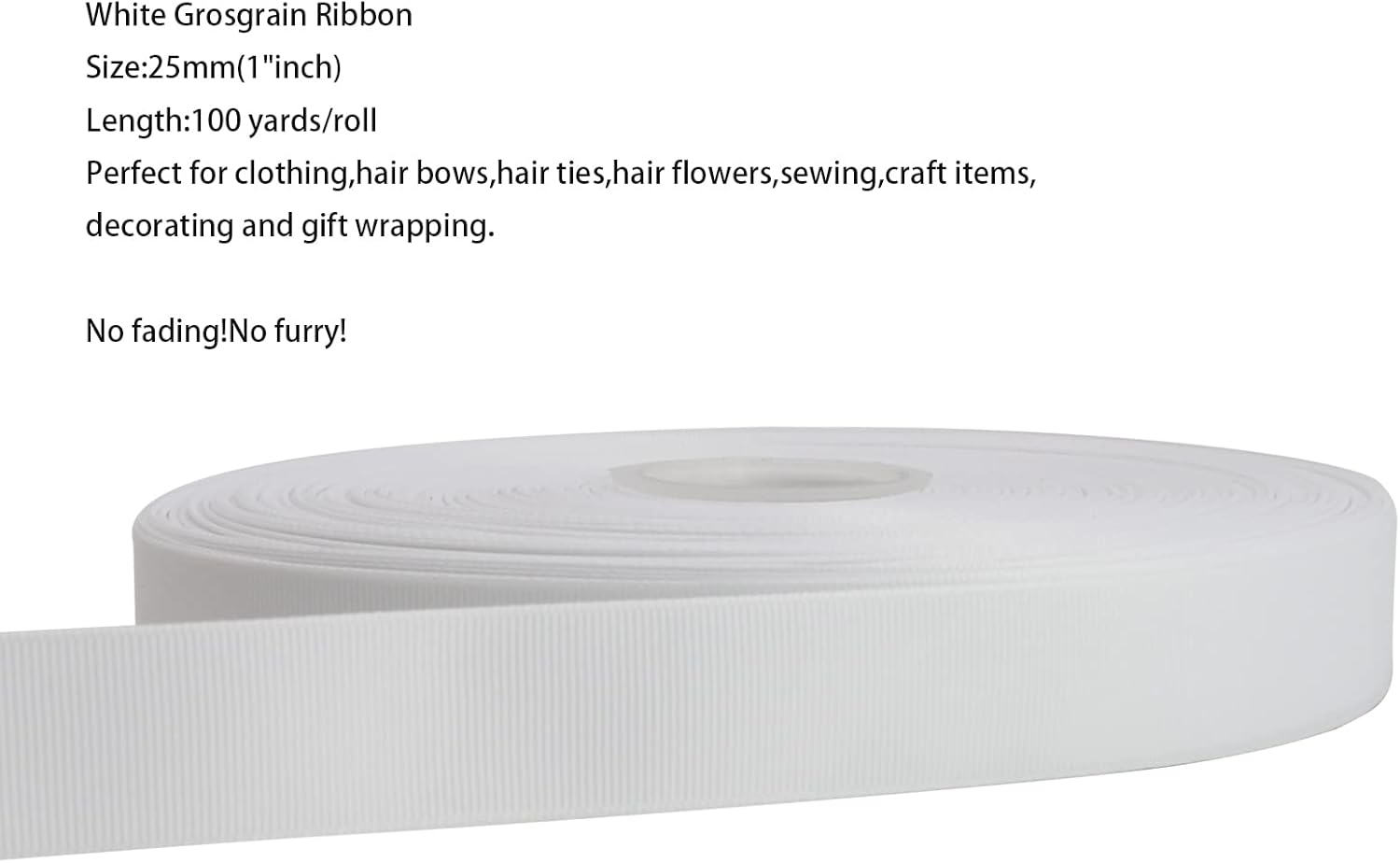 Jesep One Roll 100 Yards 1" Soild Grosgrain Ribbon Boutique Gift Wrapping Package Ribbon, DIY Crafts Bow Hair Headband Accessories Assorted Ribbon#29(1" 25mm, White)