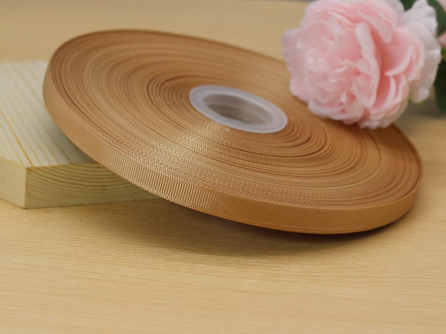 Jesep One Roll 100 Yards 3/8" Soild Grosgrain Ribbon Boutique Gift Wrapping Package Ribbon, DIY Crafts Bow Hair Headband Accessories Assorted Ribbon#835 (3/8" 10mm, Khaki)
