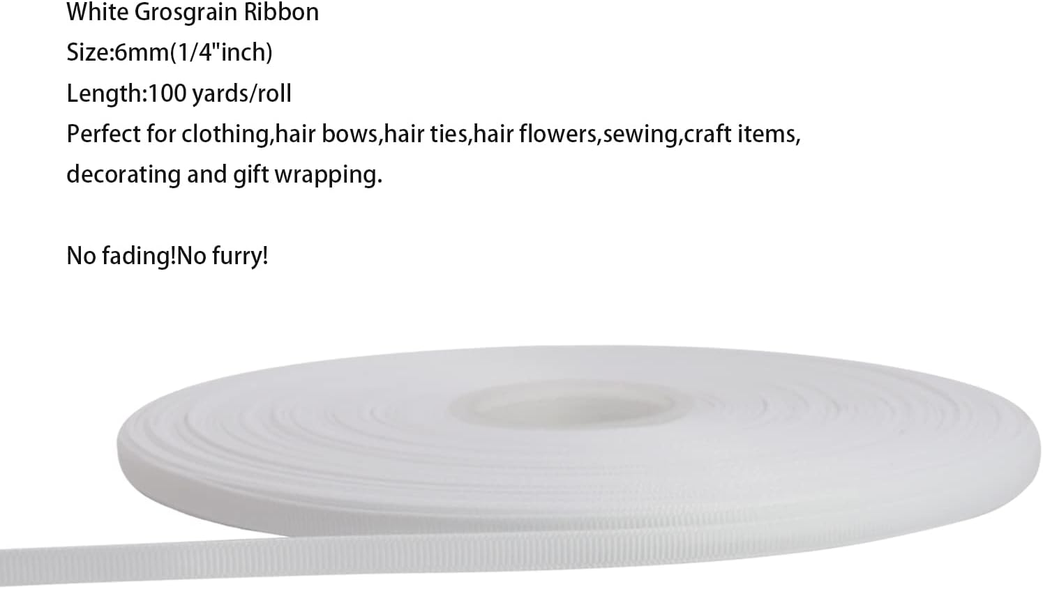 Jesep One Roll 100 Yards 1/4" Soild Grosgrain Ribbon Boutique Gift Wrapping Package Ribbon, DIY Crafts Bow Hair Headband Accessories Assorted Ribbon#29 (1/4" 6mm, White)