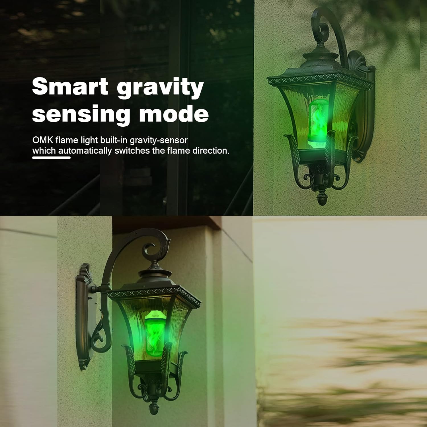 OMK Green Led Flame Light Bulb LED Christmas Decorations Fire Light Bulbs - Upgraded Halloween Bars Porch Light Bulb Flickering Fire LED Lamps for Indoor/Outdoor/Holiday Decoration Gifts