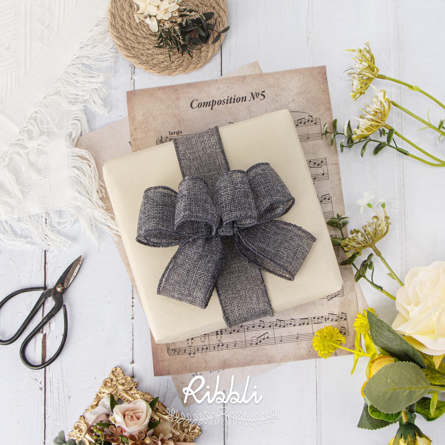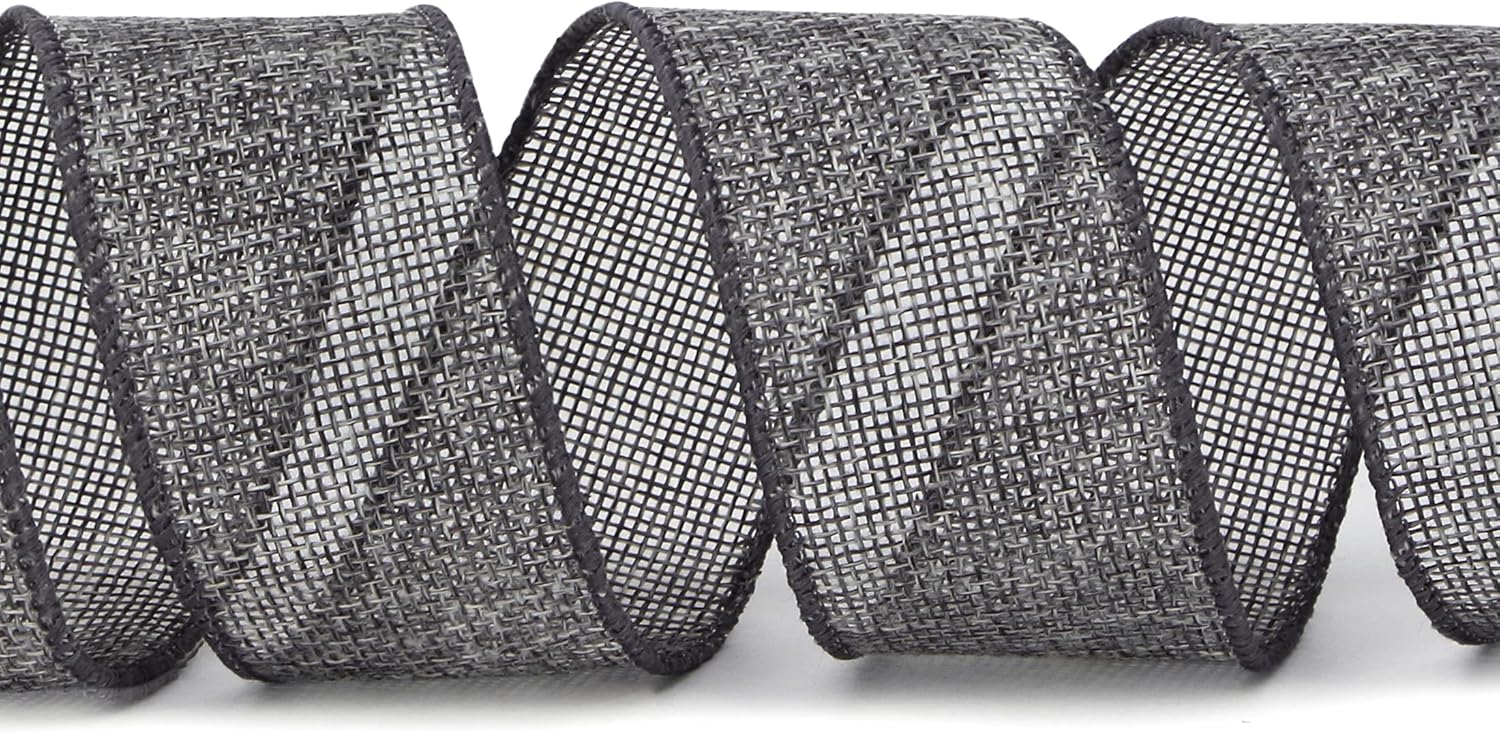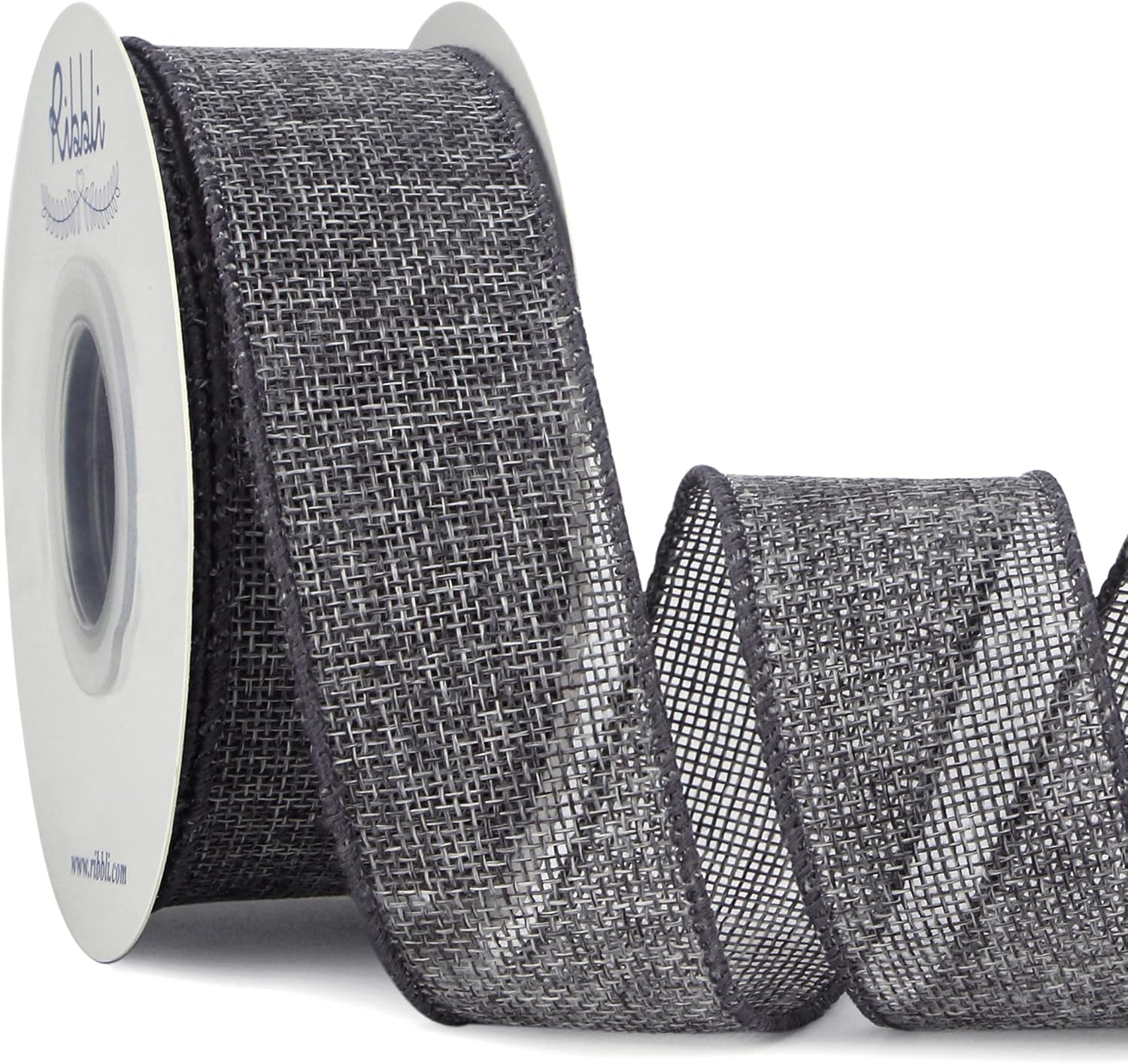 Ribbli Grey Burlap Wired Ribbon,1-1/2 Inch x 10 Yard,Gray,Solid Wired Edge Ribbon for Big Bow,Wreath,Tree Decoration,Outdoor Decoration