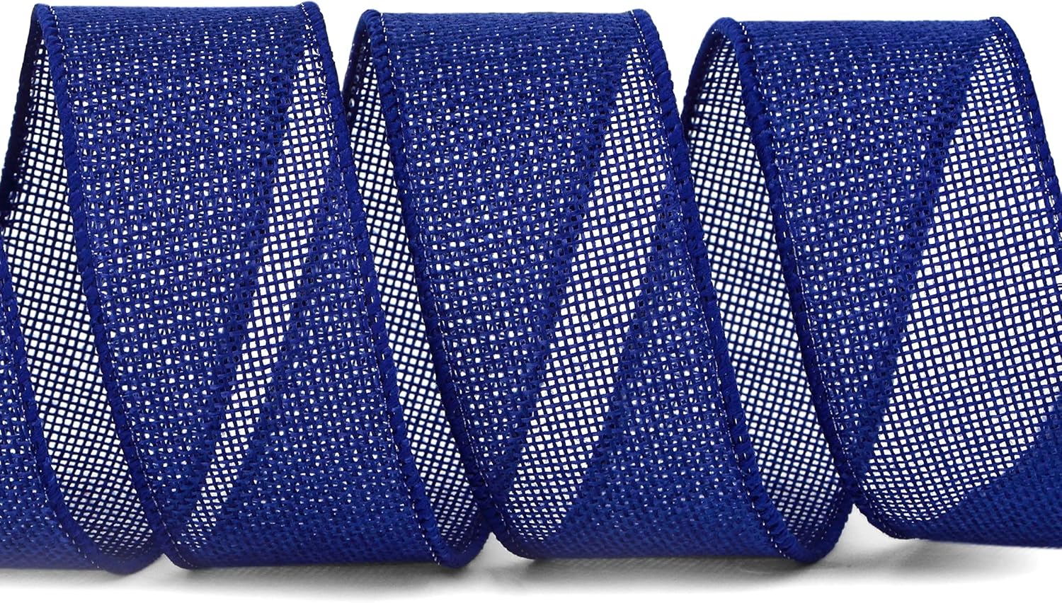 Ribbli Royal Blue Burlap Wired Ribbon,1-1/2 Inch x 10 Yard,Dark Blue Wired Edge Ribbon for Big Bow,Wreath,Tree Decoration,Outdoor Decoration