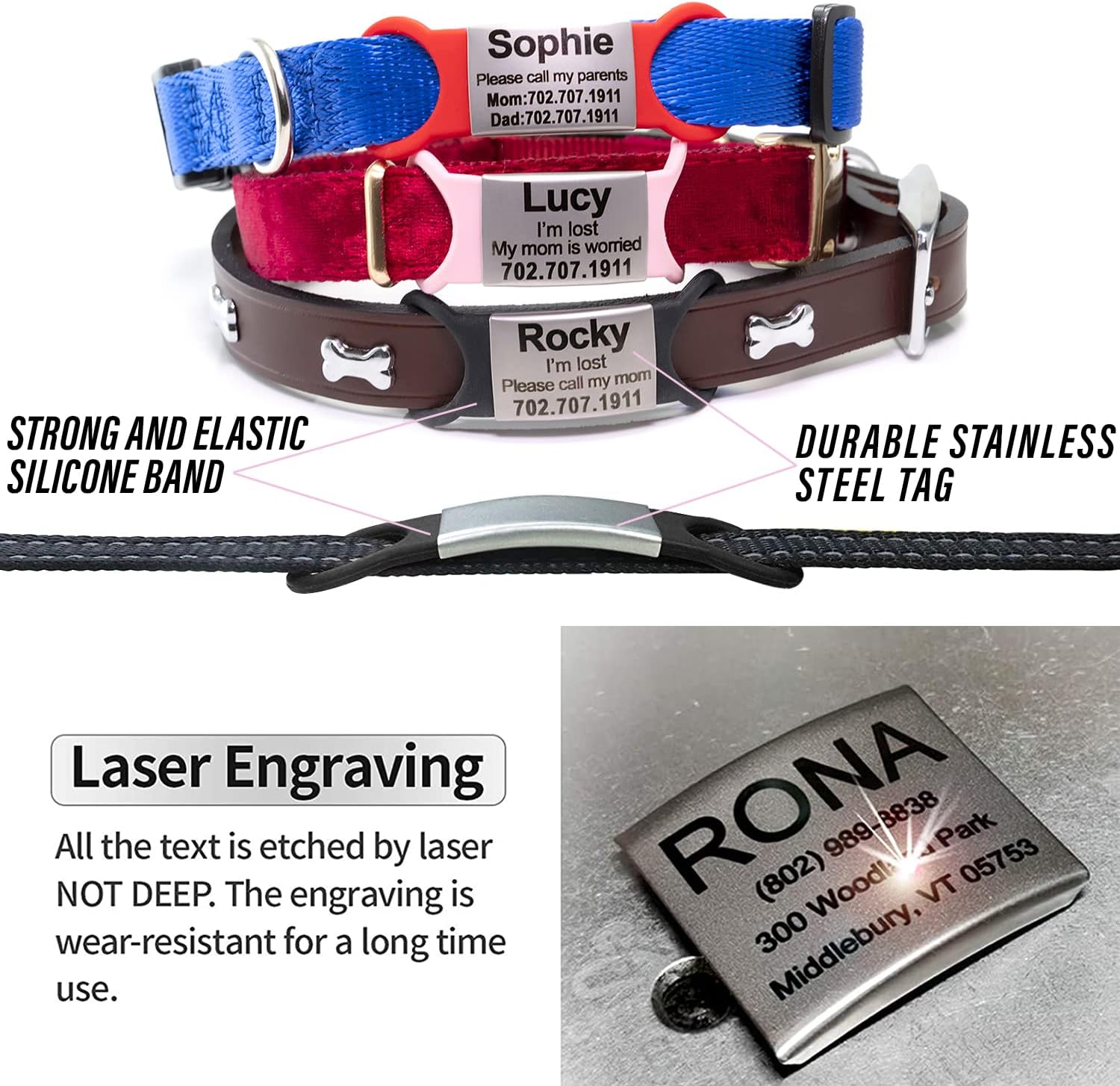 - πΆ Silent, Durable, And Lightweight Dog Tags: Made from rustproof stainless steel & silicone, our pet tags for dogs and cats will stand the test of time. The easy, slide-on design makes our pet ID tag silent and ideal for puppies and kittens.