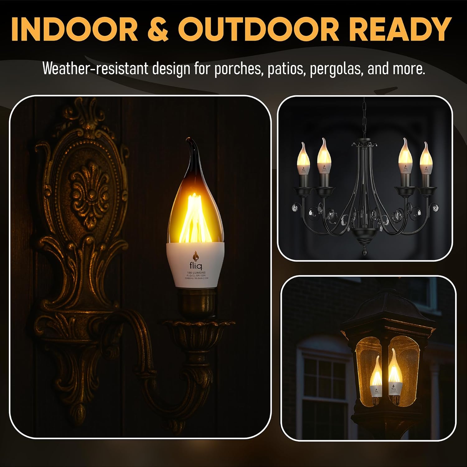 Fliq | LED Flame Light Bulb | 2 Pack | 2W | 4 Modes | Flickering Flame Bulb | 2023 Release | (Mini Clear E12)