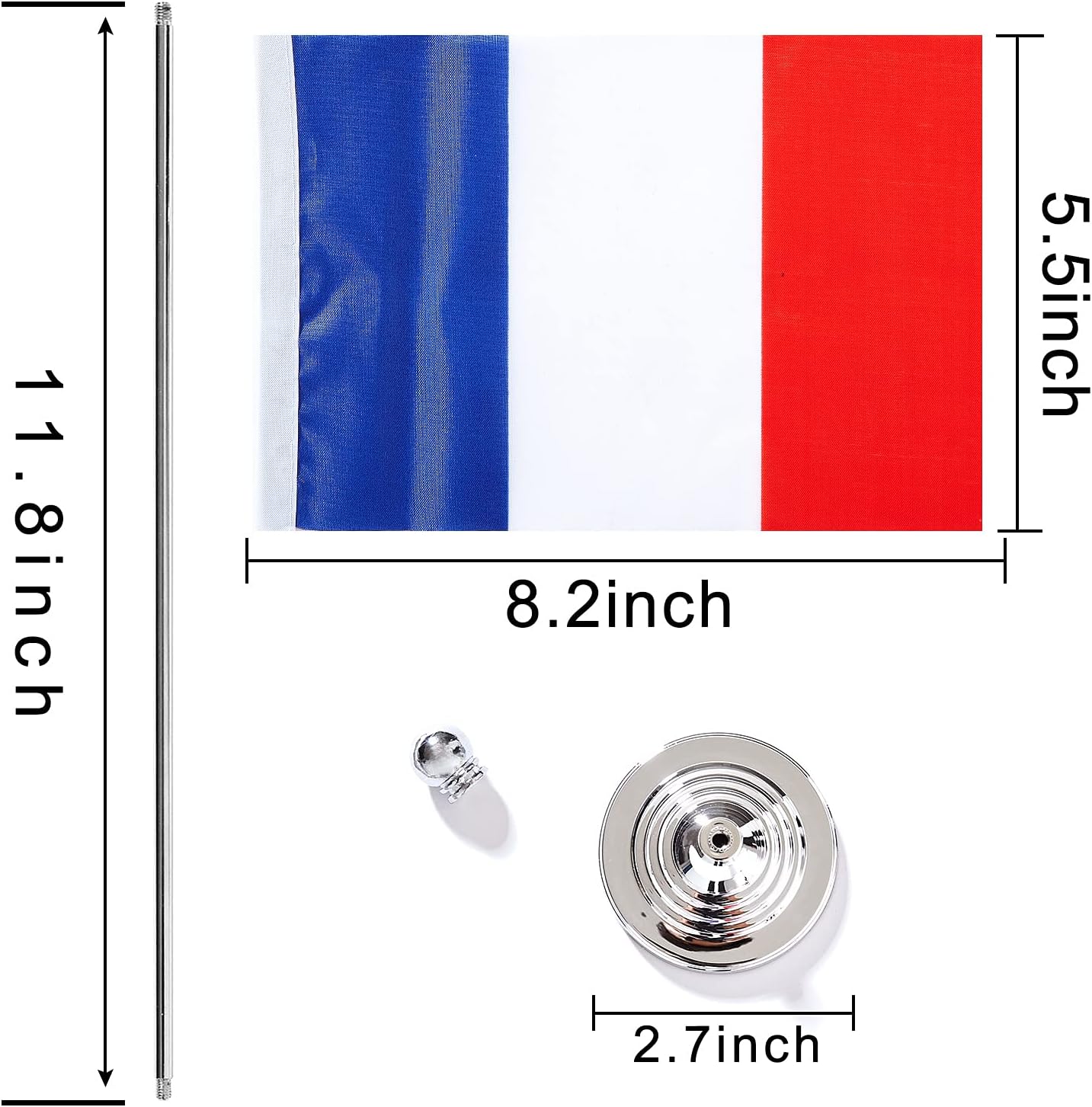 ZXvZYT 2 Pack France flag French Table Flag Small Mini French Desk Flags With Stand Base,International Festival Events Celebration Decorate,Home office Decorations