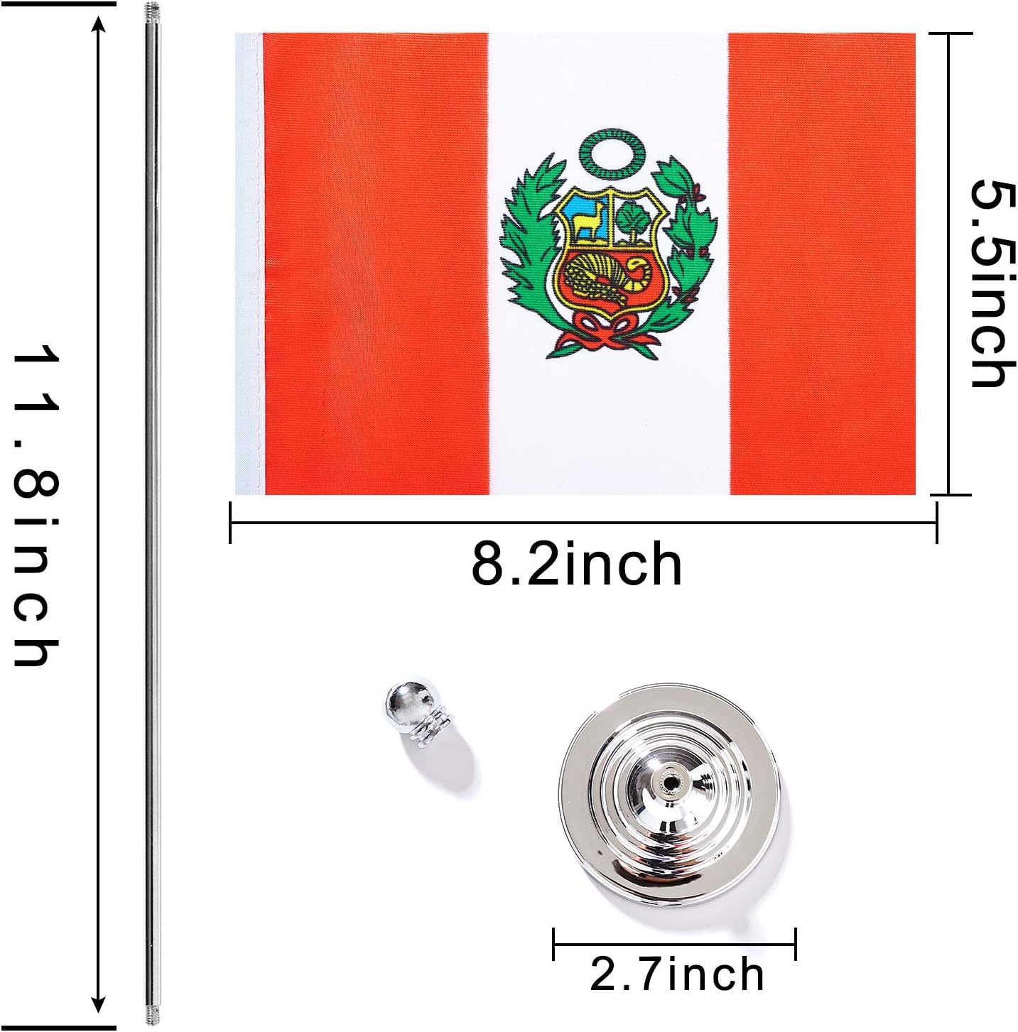 ZXvZYT 2 Pack Peru flag Peruvian Table Flag Small Mini Peruvian Desk Flags With Stand Base,International Festival Events Celebration Decorate,Home office Decorations