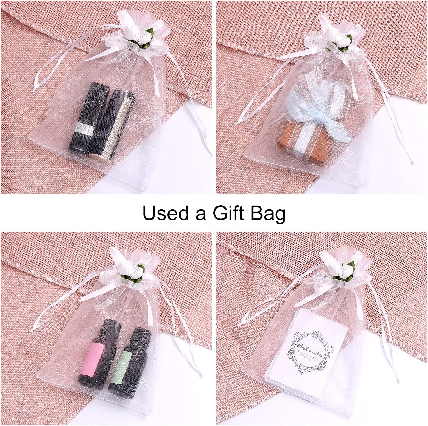 - Rose Decoration: White rose decorated organza bags, adding cute and lovely tint to your occasions