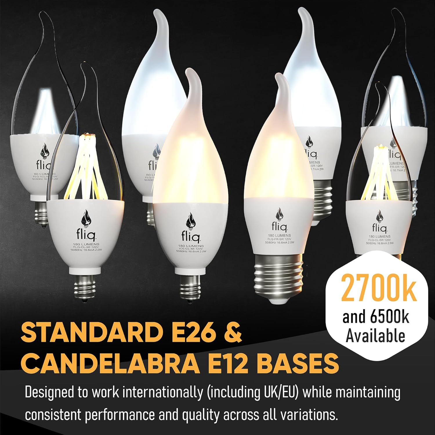 - SIMPLE INSTALLATION - Standard E26 and E12 bases screw into any regular light socket; enjoy realistic flame effects without fire hazards. Available in both standard E26 and candelabra E12 bases with clear and frosted options, designed to work internationally (including UK/EU) while maintaining consistent performance and quality across all variations
