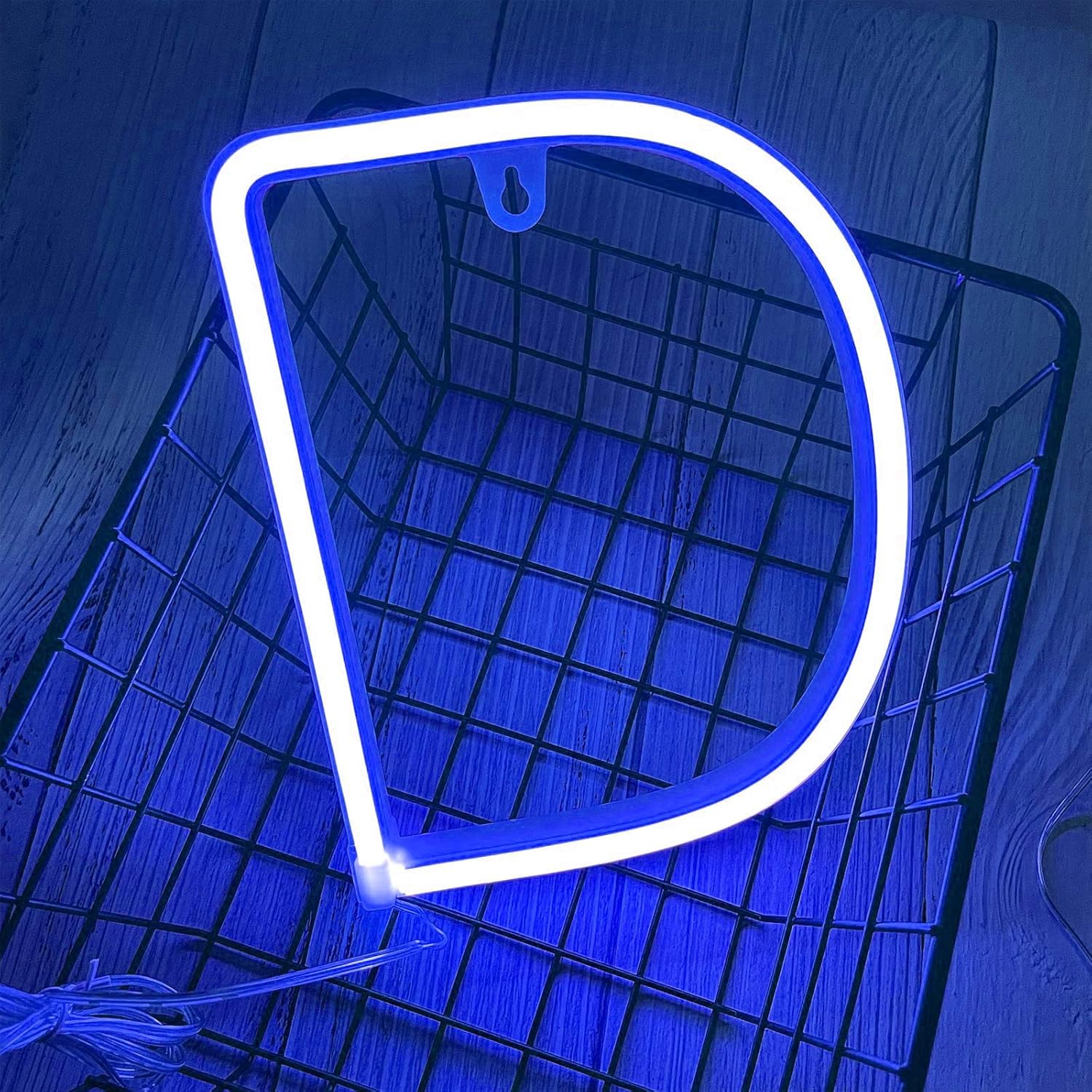 ENUOLI LED Blue Neon Letter Signs Night Light Battery or USB Operated LED Marquee Letters Neon Art Decorative Lights Wall Decor for Children Baby Room Christmas Wedding Party Decoration(D)