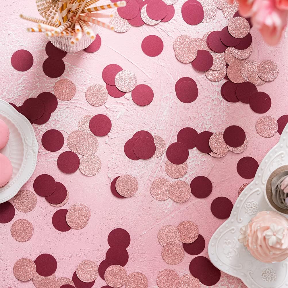 - Confetti Rose Gold and Burgundy 200 counts dots confetti,each dots 1.2'' in diameter,high quality craft paper confetti