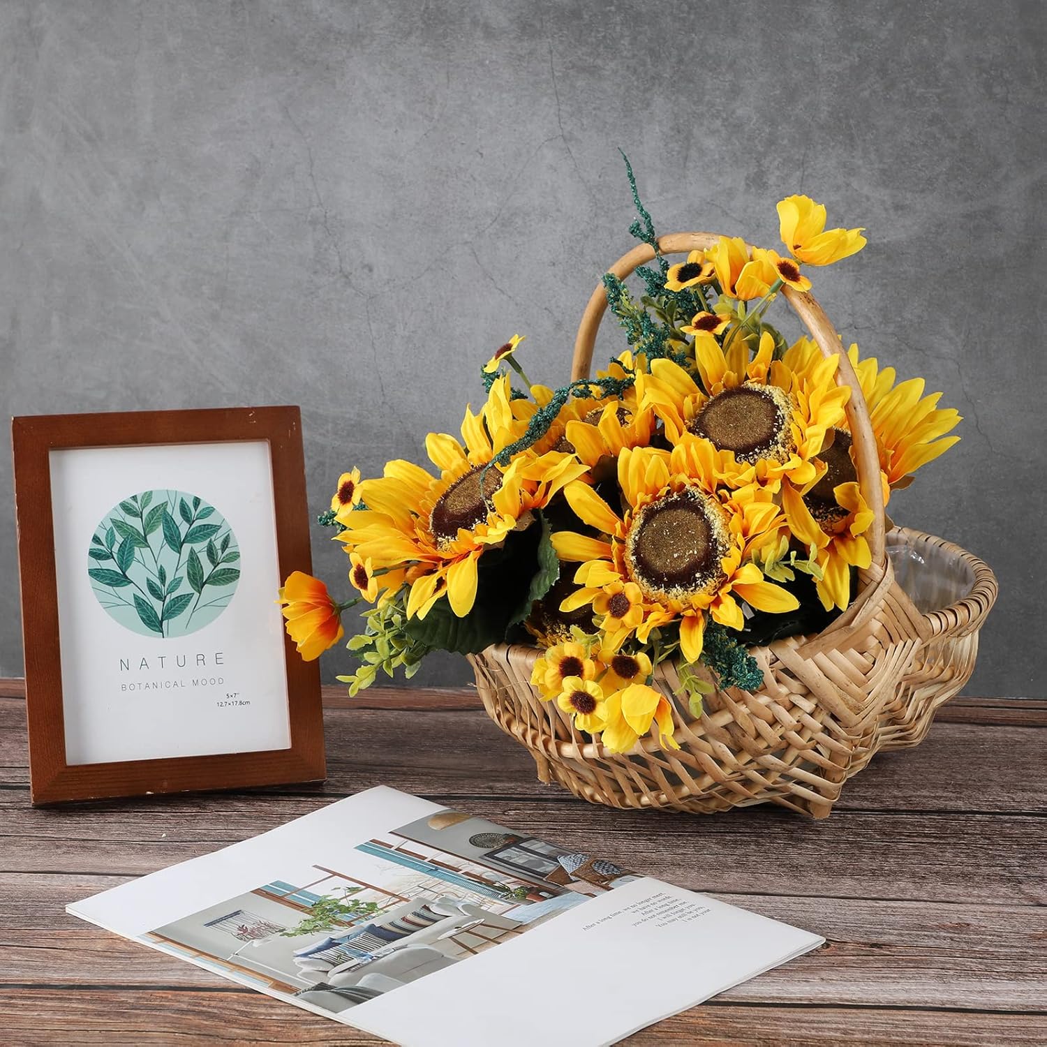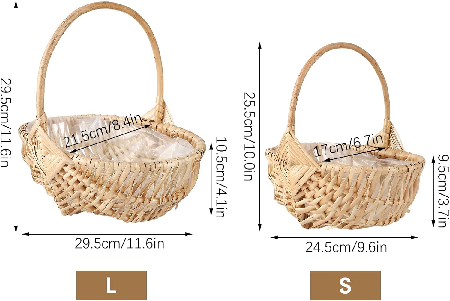 DULRLLY Handwoven Flower Basket with Handle, Willow Storage Basket Empty Wicker Picnic Basket with Plastic Insert, Easter Basket Wedding Flower Girl Baskets for Home Party Decor
