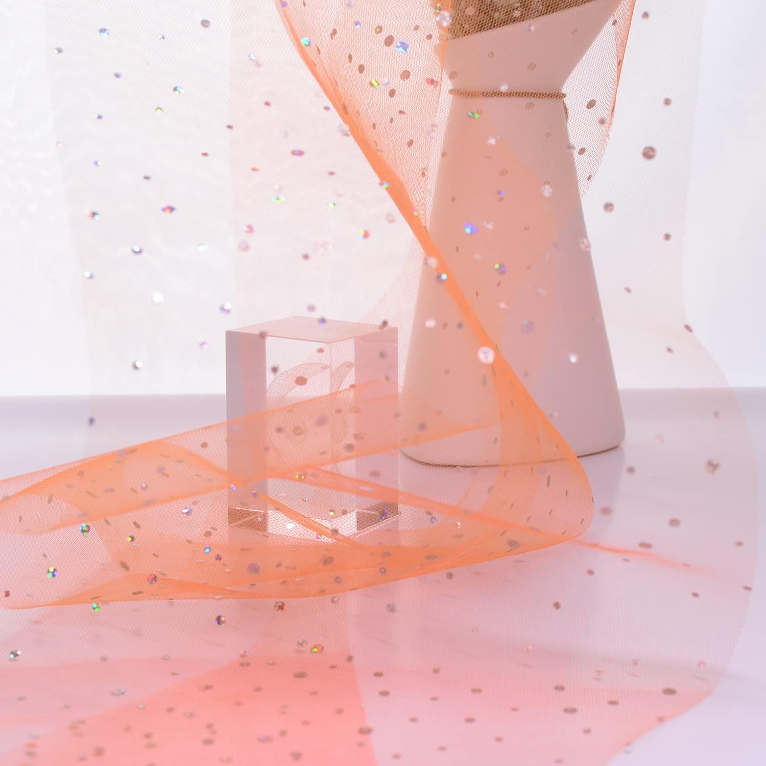 Glitter Tulle Rolls, 6' by 50 Yards (150FT) Sequin Tulle Netting Fabric for Tutu Skirts Sewing Birthday Wedding Party Decoration (Orange)