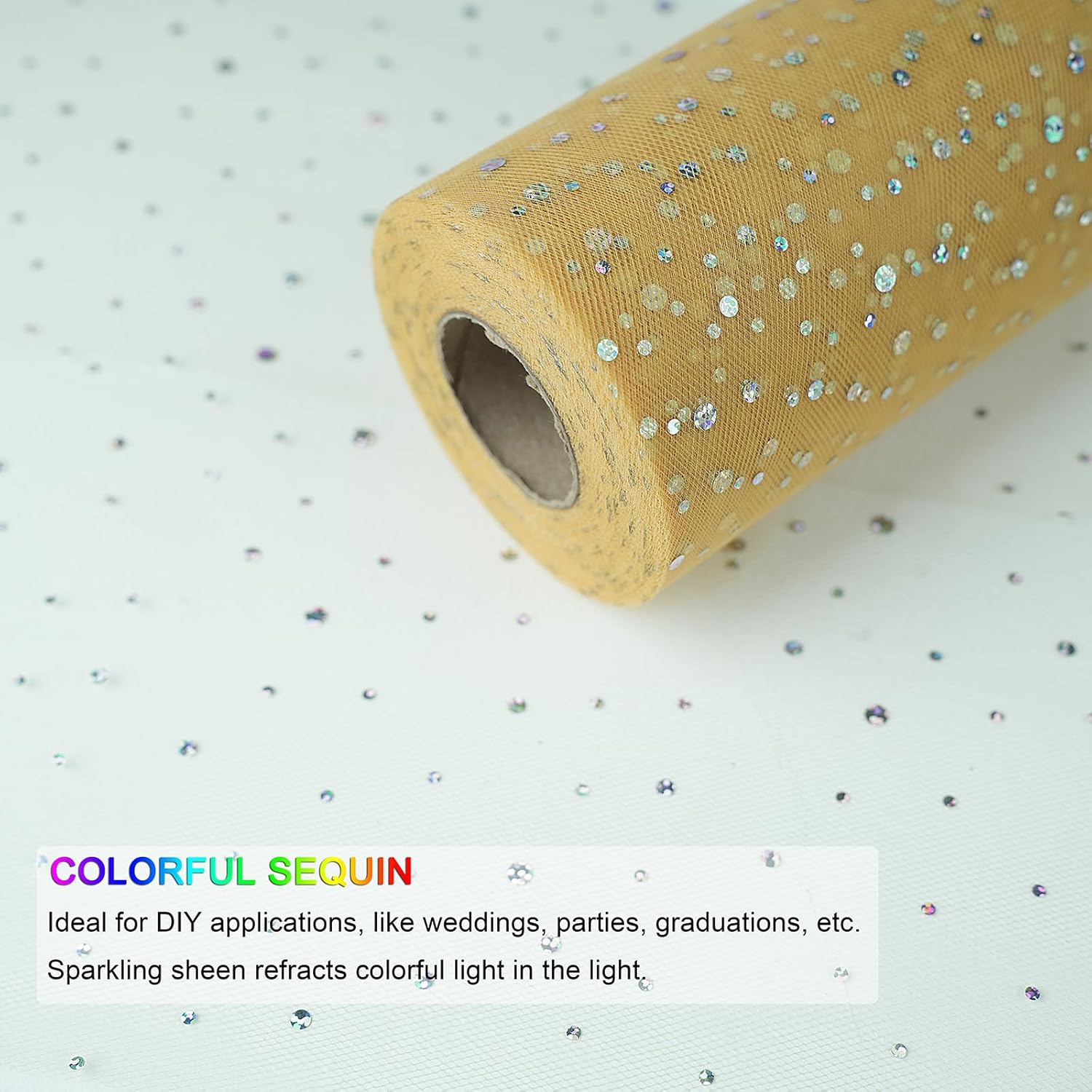 Glitter Tulle Rolls, 6” by 50 Yards (150FT) Sequin Tule Netting Fabric Tulle for Tutu Skirts Sewing Birthday Wedding Party Decoration (Gold)