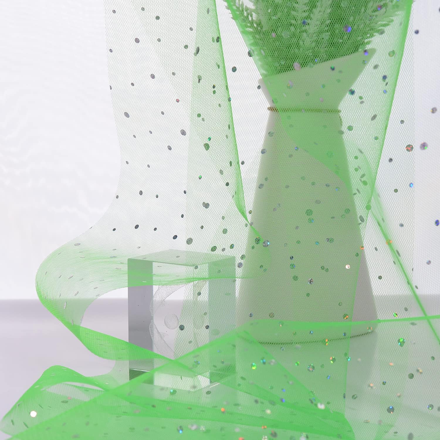 Glitter Tulle Rolls, 6' by 50 Yards (150FT) Sequin Tulle Netting Fabric for Tutu Skirts Sewing Birthday Wedding Party Decoration (Green)