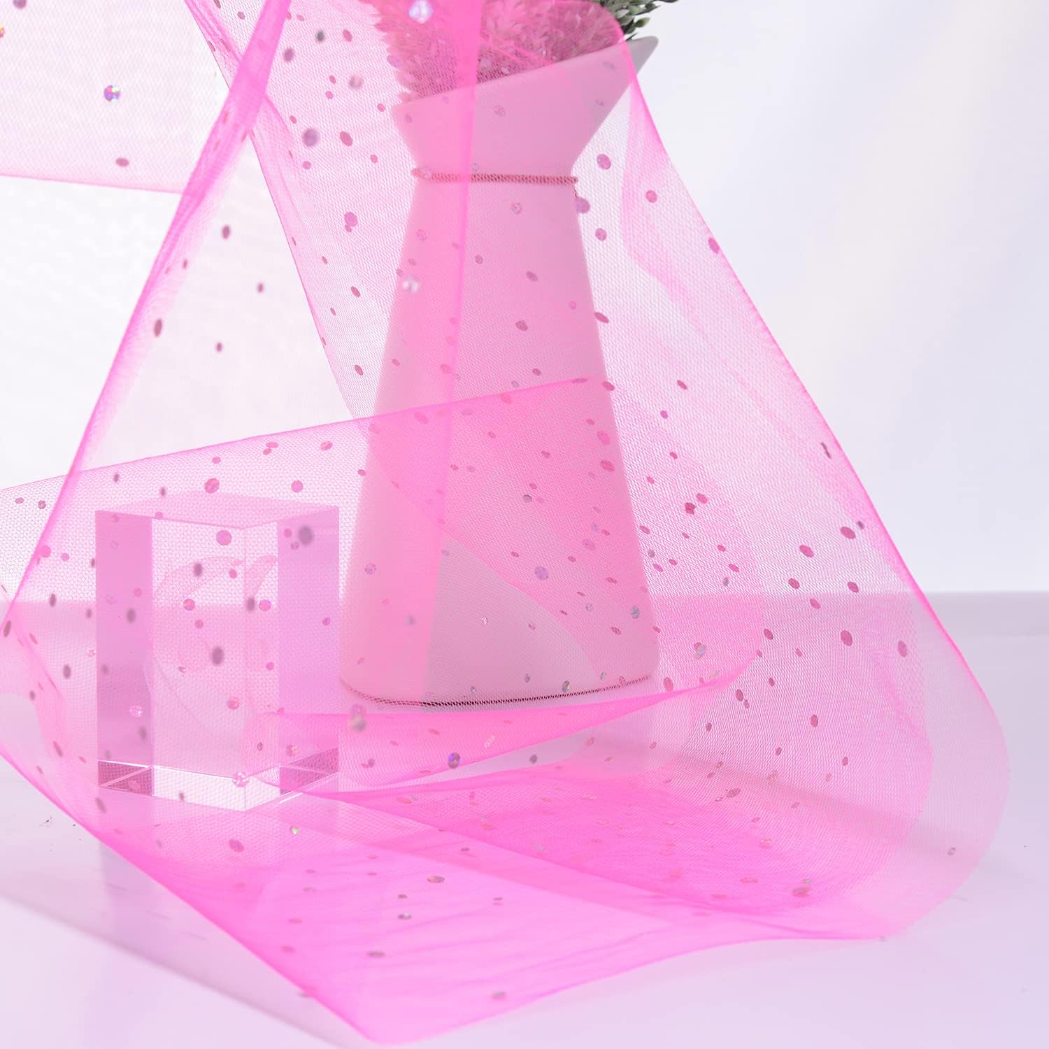 Glitter Tulle Rolls, 6' by 50 Yards (150FT) Sequin Tulle Netting Fabric for Tutu Skirts Sewing Birthday Wedding Party Decoration (Dark Pink)