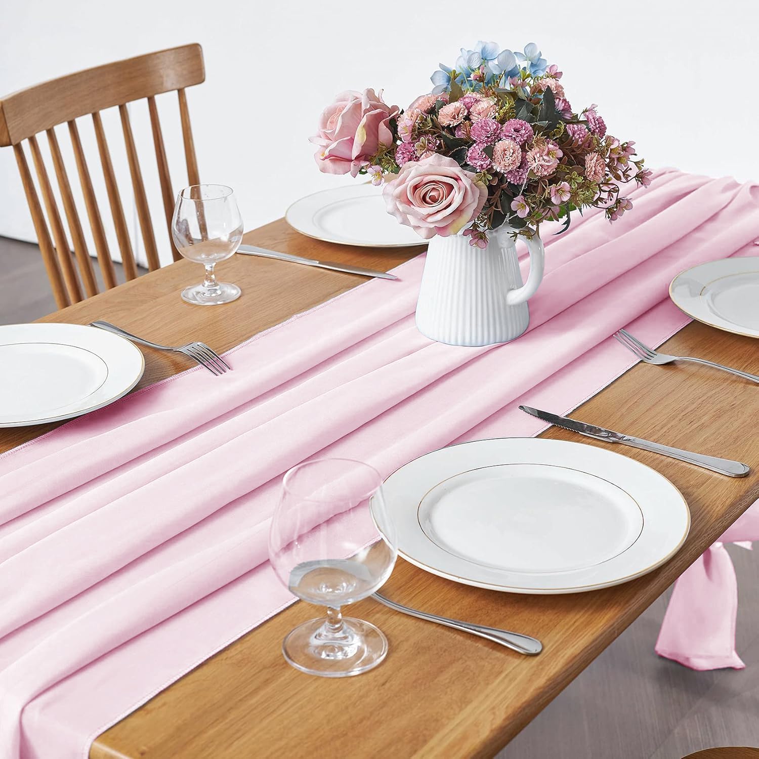 2 Pack 10Ft Blushing Pink Chiffon Table Runner Sheer 29x120 Inch for Romantic Wedding Decor Bridal & Baby Shower Birthday Rustic Party Decoration