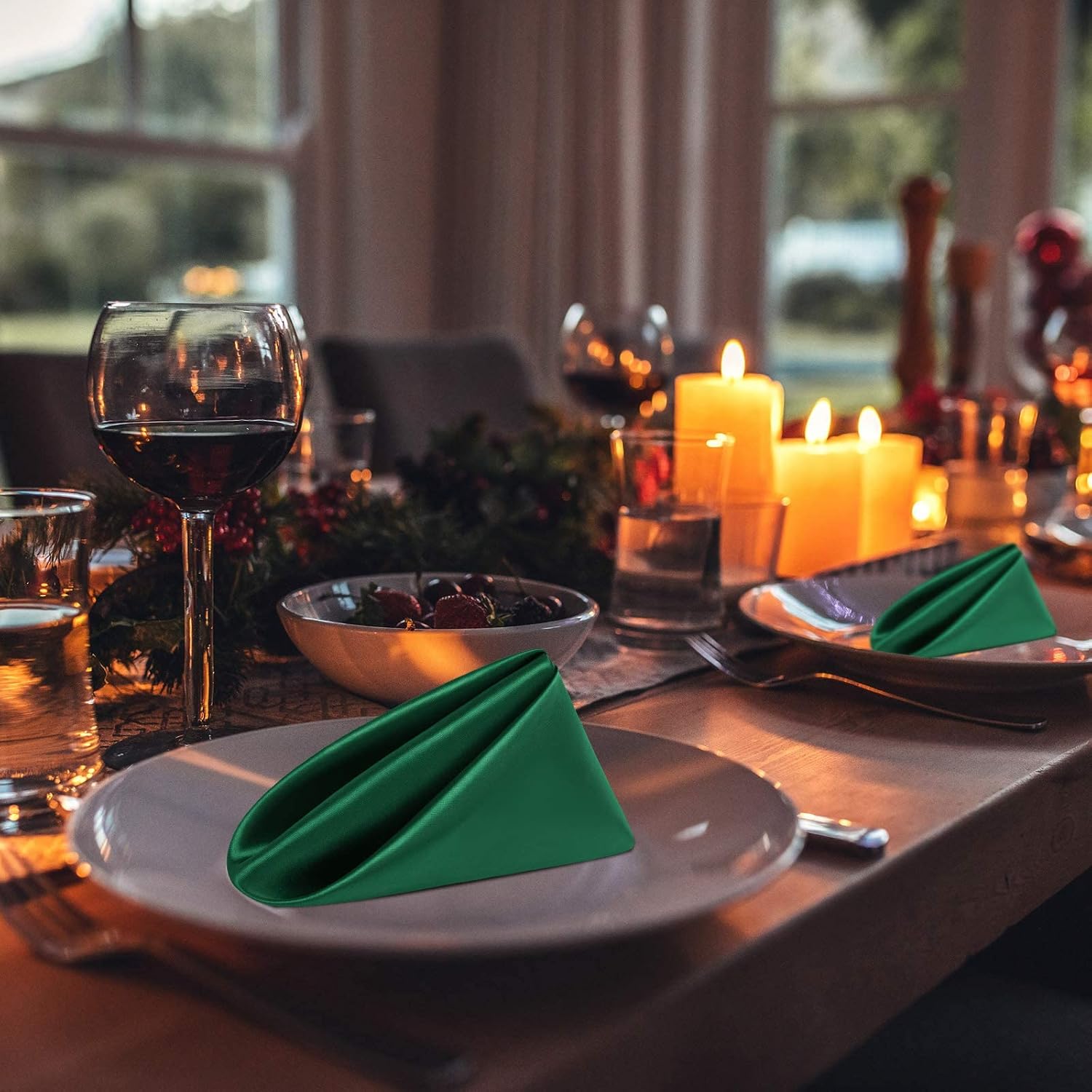 Aneco 12 Pieces Satin Napkin Square 20 x 20 Inches Dinner Napkins Weddings Party Napkin Soft Table Napkins for Romantic Weddings Party Dinner Decoration (Forest Green)
