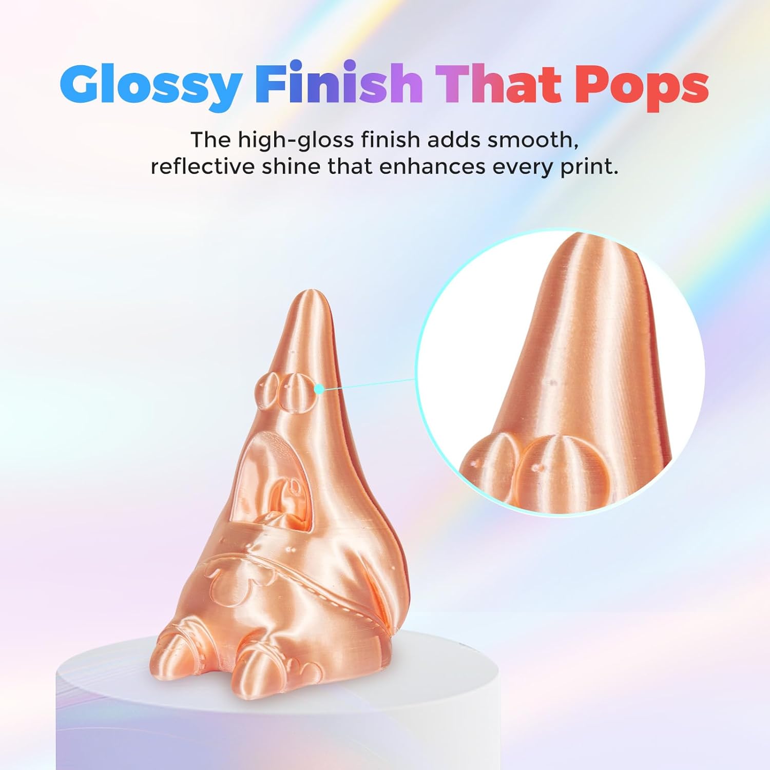 - Smooth Finish: FLASHFORGE Silk filament produces models with a silky smooth and glossy surface, giving them an elegant and premium look.
