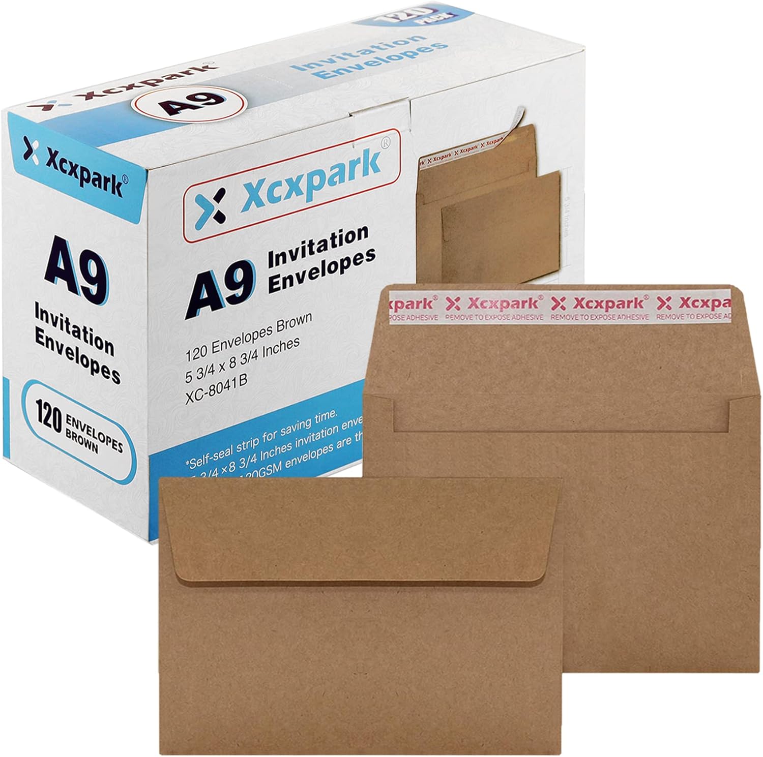 120 Qty A9 Invitation Envelopes 5.75x8.75, Self Seal 120GSM Brown Kraft Paper Envelopes for Invitations, Papers, Photos, Documents, Wedding, Baby Shower, Easy to Seal and Peel