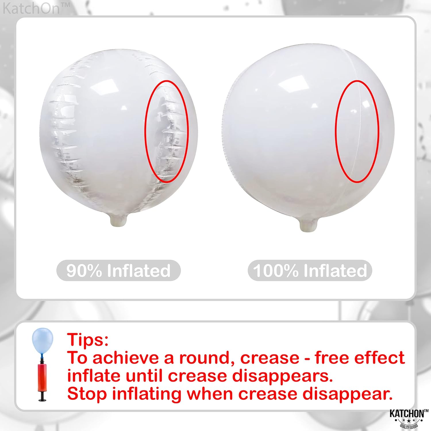 KatchOn, Round White Foil Balloons - 22 Inch, Pack of 6 | 4D Mylar White Balloons for Party Decorations | Metallic Balloon for Birthday, Anniversary, Bridal Shower, Baby Shower Decorations
