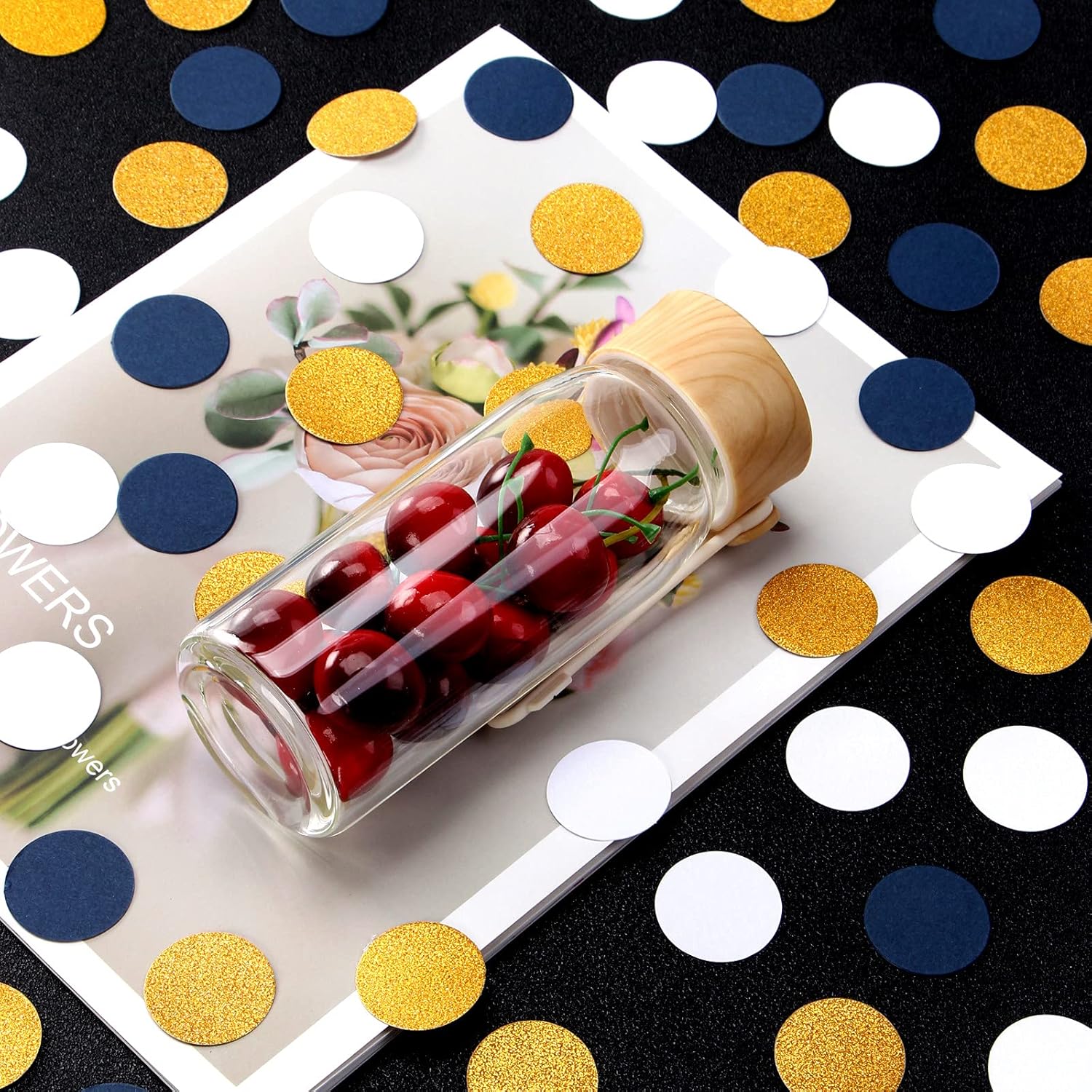 Navy Blue White Gold Confetti Birthday Decorations for Boys Glitter Paper decor Sprinkles Biodegradable Table Confetti Round for Graduation Wedding Baby Shower Party Lasting Surprise 300pcs