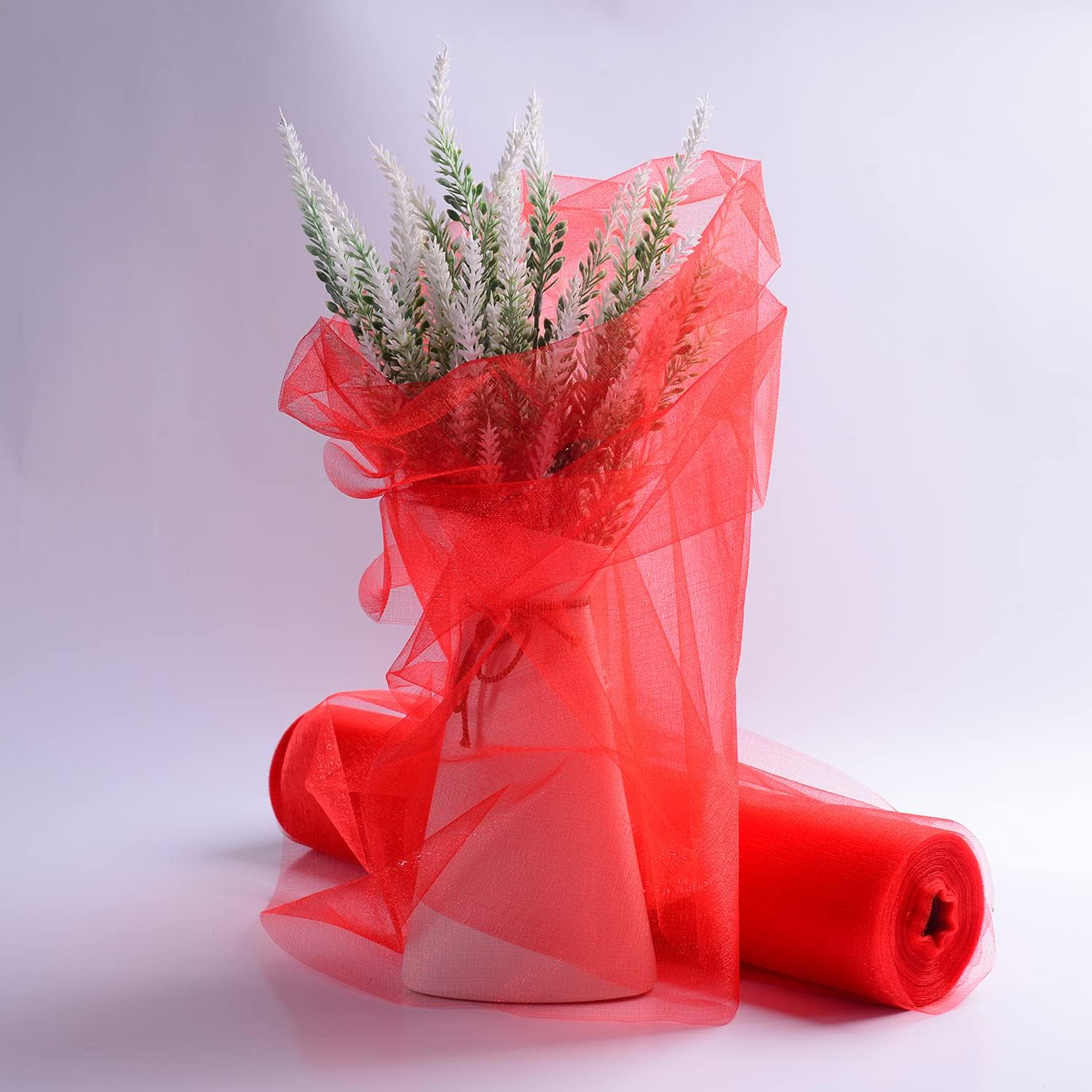 Crystal Organza Fabric Tulle - 16" by 50 Yards Sheer Fabric for Wedding Party Decoration Bridal Shower Tutu Roll Netting Spool Ribbon Wrapping (Red)