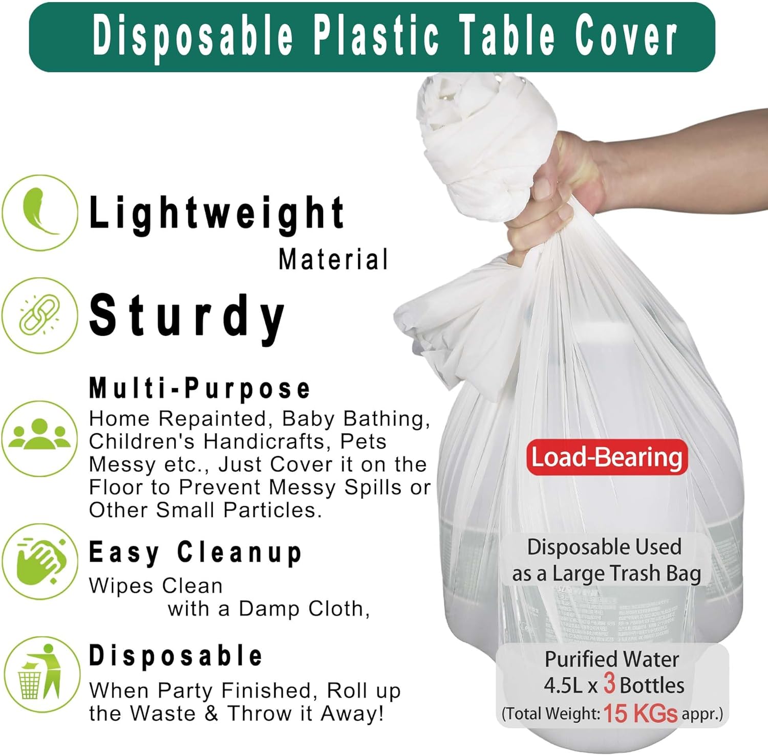 - β― WIDE APPLICATIONS: The table coverings not only suitable for indoor and outdoor parties, cocktail, buffet, card table, pub bistro restaurant, bachelorette, engagement, weddings banquet, holiday festival vacation dinner, dinning kitchen tables, bbq, barbecue, picnic, family outings events, but also great to cover the floor well to prevent splashing or other small particles, when you need to repaint your home or bathe your baby or do crafts with your child.