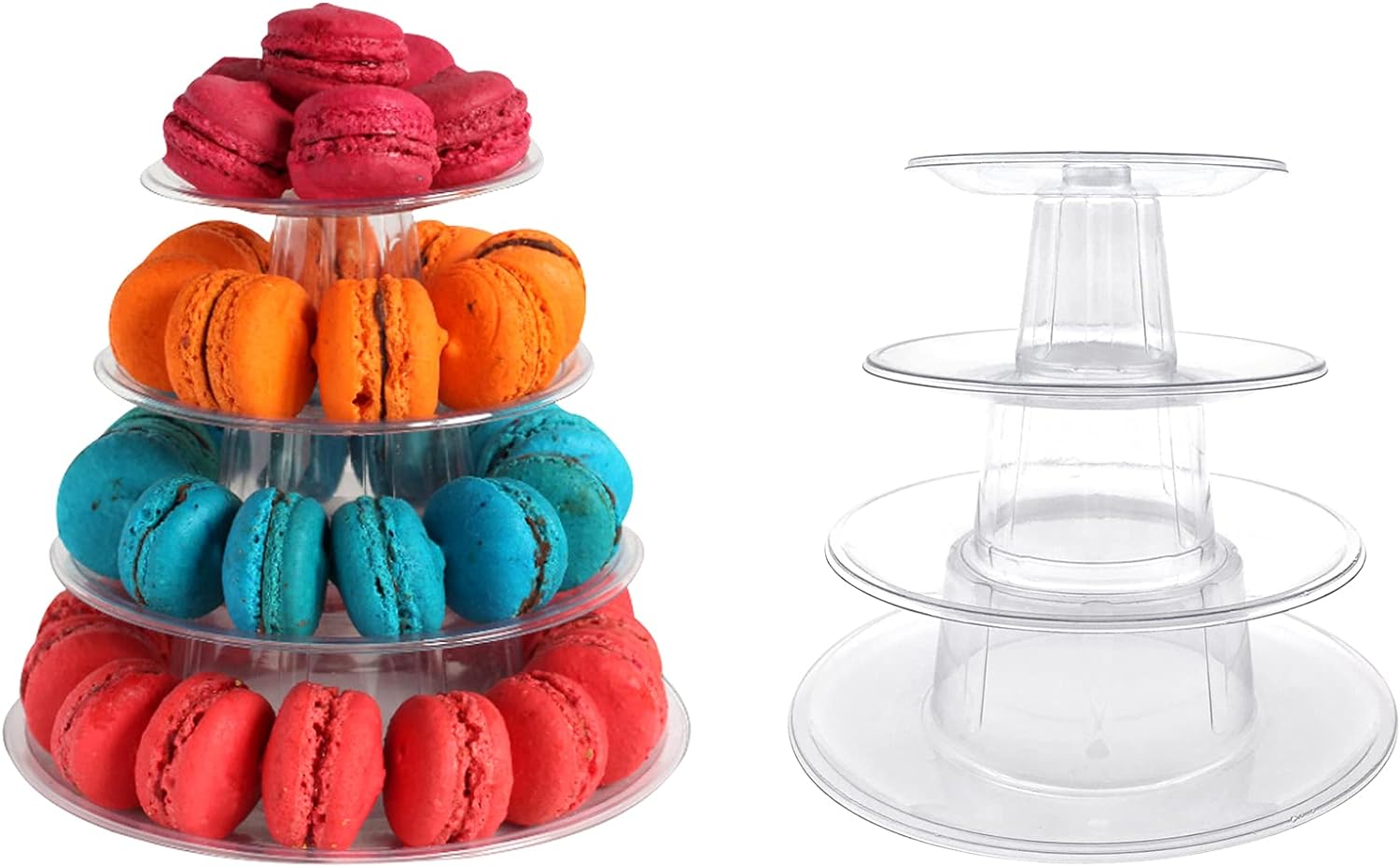 - This removable macaron tower consists of 4 individual clear stackable plastic levels; Adjustable tiers and can be used with just 2 or up to 4 tiers.