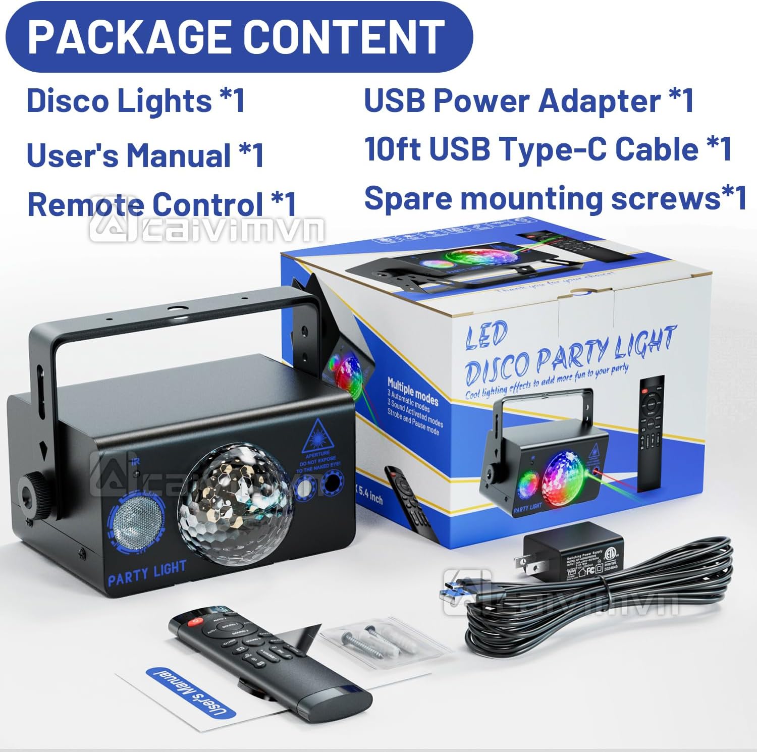 - Disco Lights + Disco Ball 2 in 1 Party Lights. New design of the effect combination of 2 kinds of party lights has the red and green graphic of the disco and the 7-color color atmosphere of the disco ball. Make your party more beautiful and interesting.