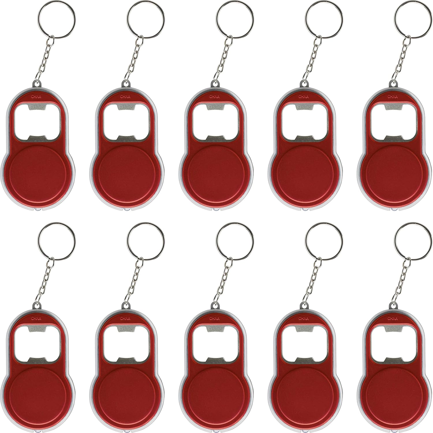 Bottle Opener & LED Keychains Set of 10, Bulk Pack - Perfect for Tradeshows, Party Favors, Other Events - Red