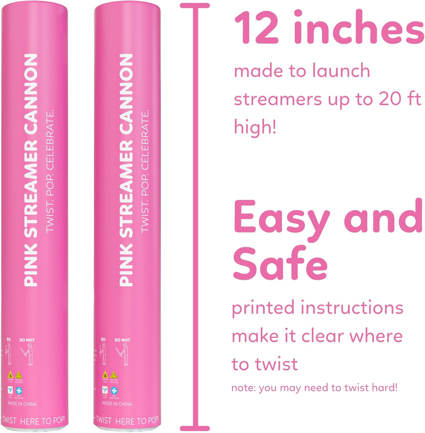 Pink Streamer Cannon Poppers | 2 Pack | Biodegradable Pink Streamers | TUR Party Supplies | Up to 25ft | Giant (12β) | Party Poppers for Graduation, Birthdays, and Bachelorette & Princess Parties