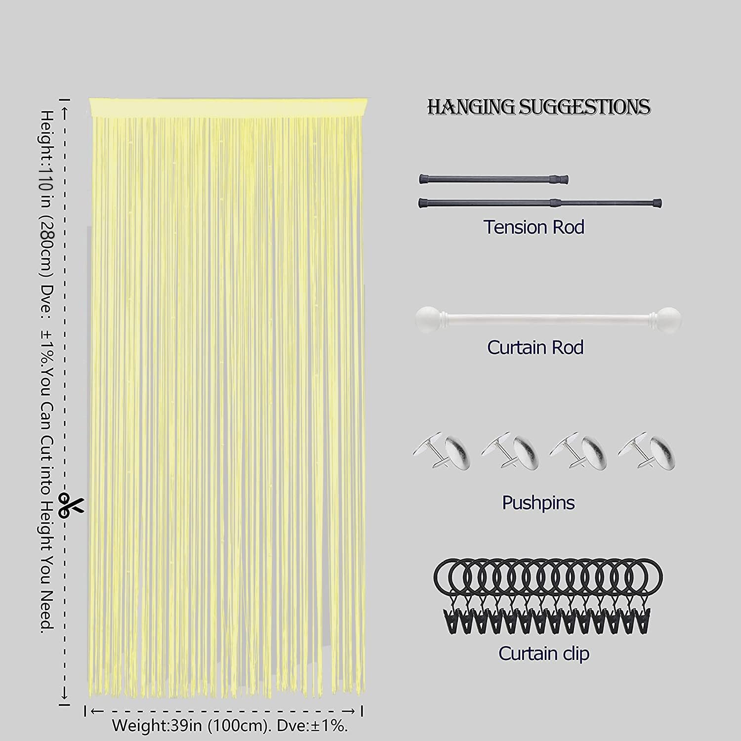 - Width 39inch=100cm,Height 110inch=280cm,If the height is too long,you can cut it directly.