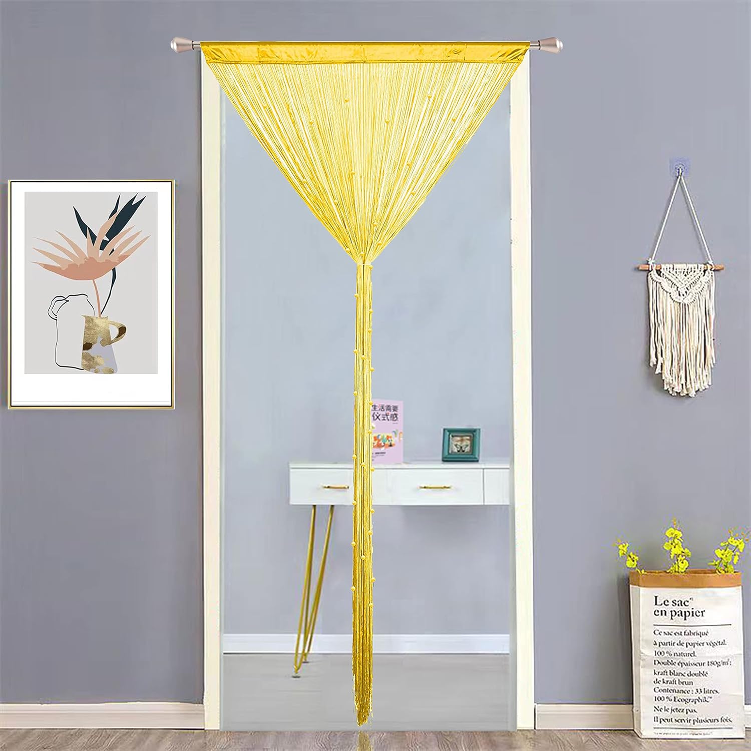 - The door curtains hang beautifully and let light in,meanwhile keep privacy,look pretty and delicate.If you need the strings to be dense,we suggest buy 2 or more.