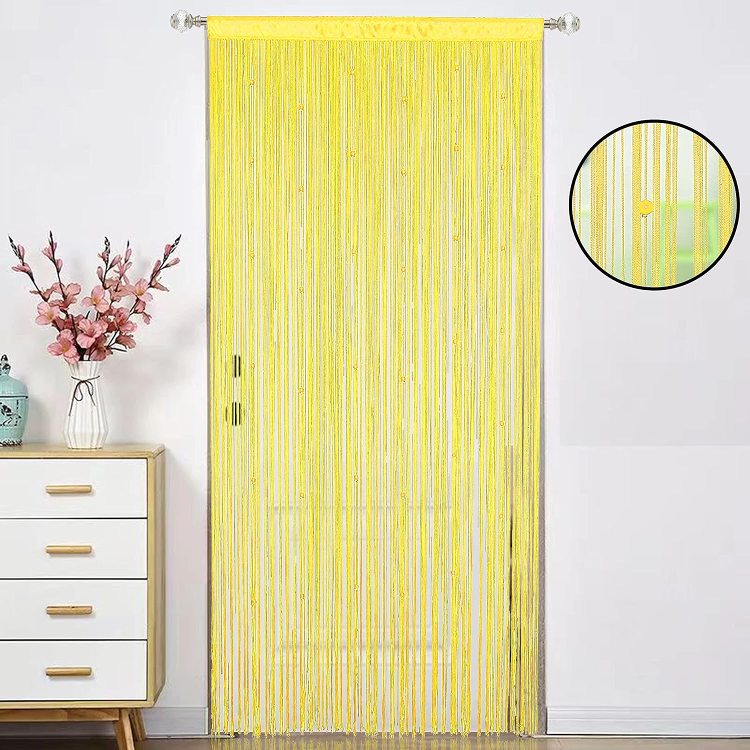 Beaded Doorway Curtain Door Beads Dense String Curtains Fringe Hippie Perfect for Wall Hanging Decor Room Divider Privacy Doors Window Closet Doorways Decorations (100x280cm,Yellow)