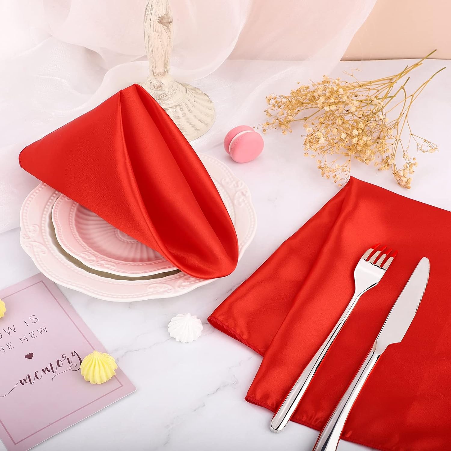 - Package includes: you will receive 16 pieces of satin napkins in red, basic pure colors are suitable for all kinds of occasions, with elegant and simple design and almost not outdated, which can improve your home decoration level and add more designs to your room(tip: due to the reason of the product material there will be a certain color difference)