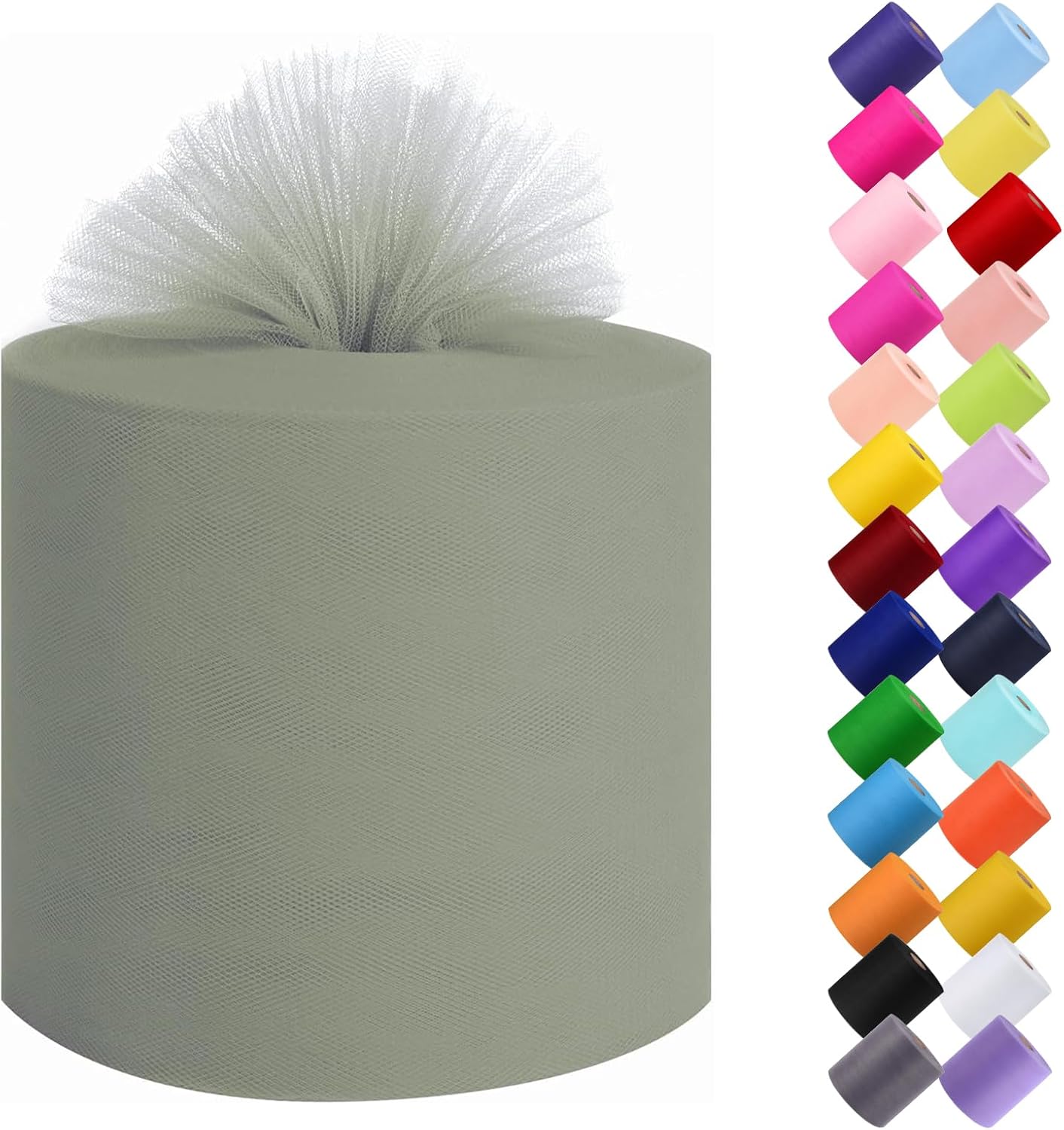 Tulle Fabric Roll, 6” by 200 Yards (600FT) Tulle Organza Fabric Spool for DIY Tutu Skirt Baby Shower Decor Wedding Backdrop Crafts Birthday Party Supplies (Sliver)