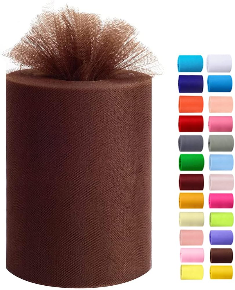 Tulle Rolls 6” by 100 Yards (300 feet) Tulle Roll Spool Fabric for DIY Tutu Skirts Wedding Baby Shower Crafts Decorations Party Supplies (Brown)