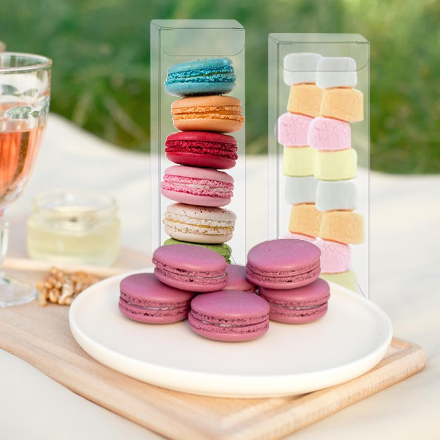50 PCS Clear Favor Boxes, Macaron Gift Boxes with Inserts, Truffle Boxes, Clear Candy Boxes for Christmas, Wedding, Baby Birthday Party, 6.3"x1.5"x1.4"