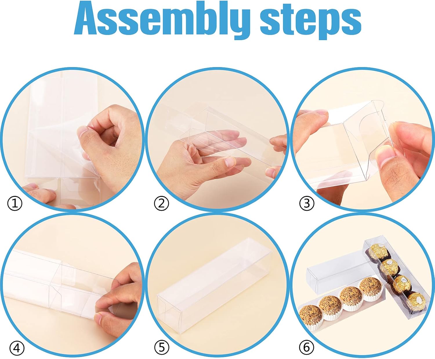 - 【Easy Assemble 】- These clear favor boxes are simple and quick to assemble. Just peel off the protective film, fold along the lines, and snap the tabs together. The included inserts help you separate and display your treats in a neat and attractive way.