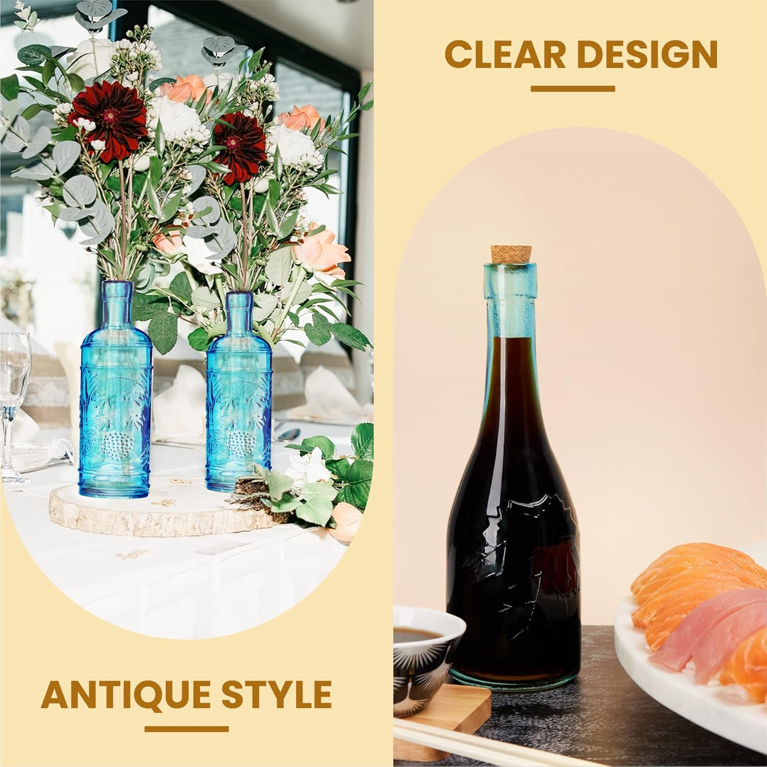 Assorted Blue Glass Bottles with Corks, 6 Pack, 2.5in X 9in, 16oz