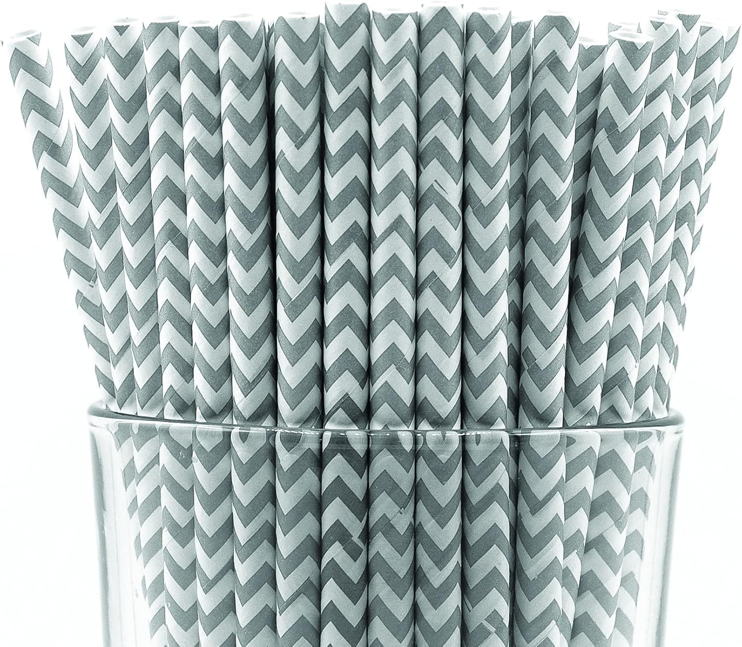 - Pack of 900 Gray Chevron wrapped paper straws that are 7.75” long and have a diameter of 0.25”. Made with 4-ply paper which translates into thicker and more resilient straws that won’t wilt or change shape in both hot and cold drinks.