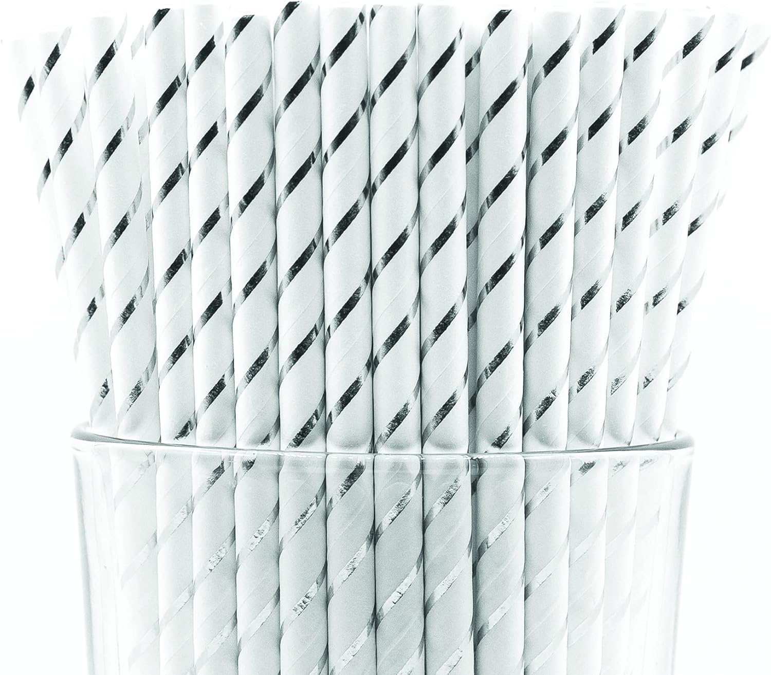 Pack of 900 Silver Foil Stripes Biodegradable 4-Ply Paper Drinking Straws (Compostable, Non-toxic, BPA-free)